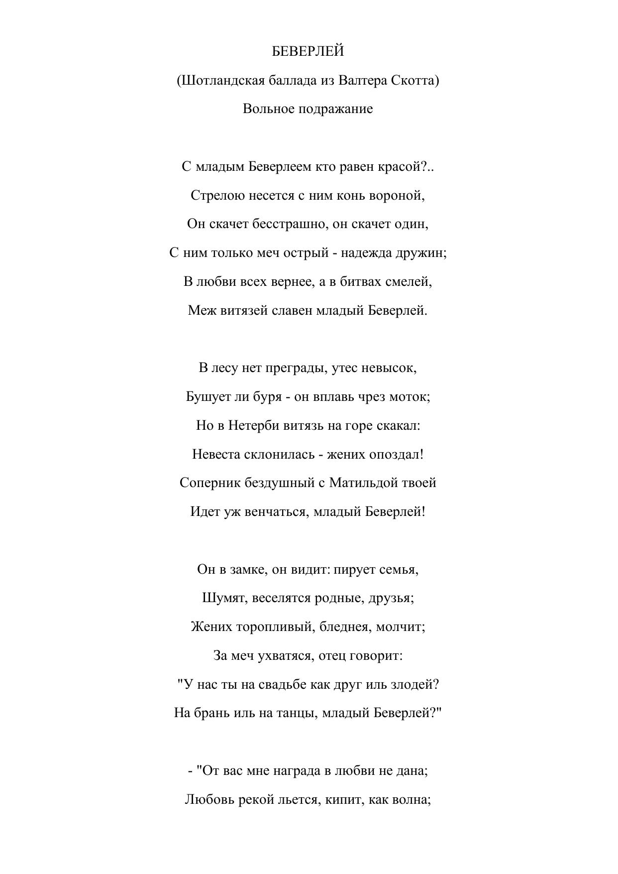 Беверлей (Шотландская баллада из Вальтера Скотта)