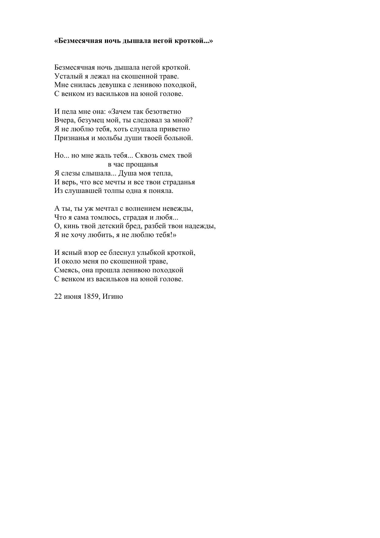 Безмесячная ночь дышала негой кроткой…