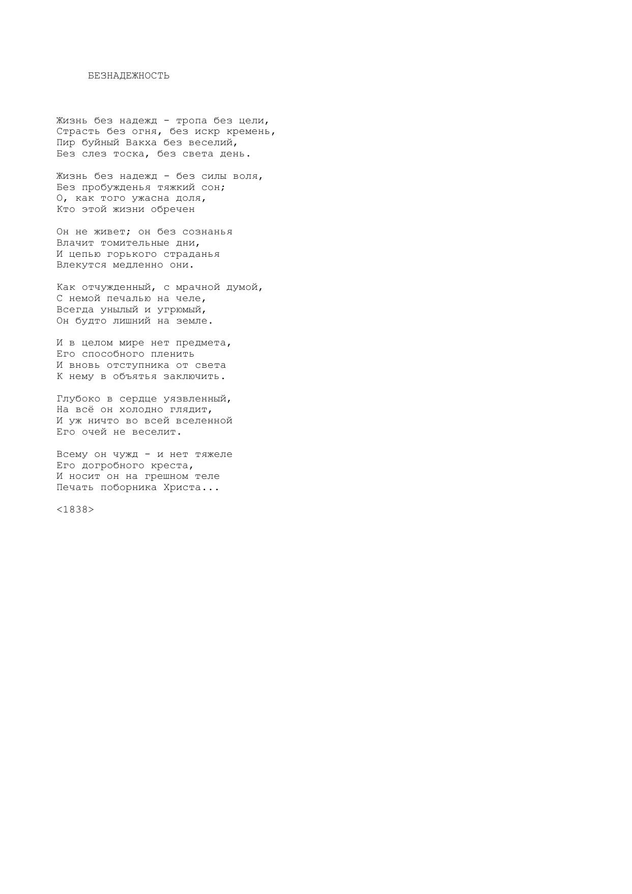 Безнадежность (Жизнь без надежд - тропа без цели...)
