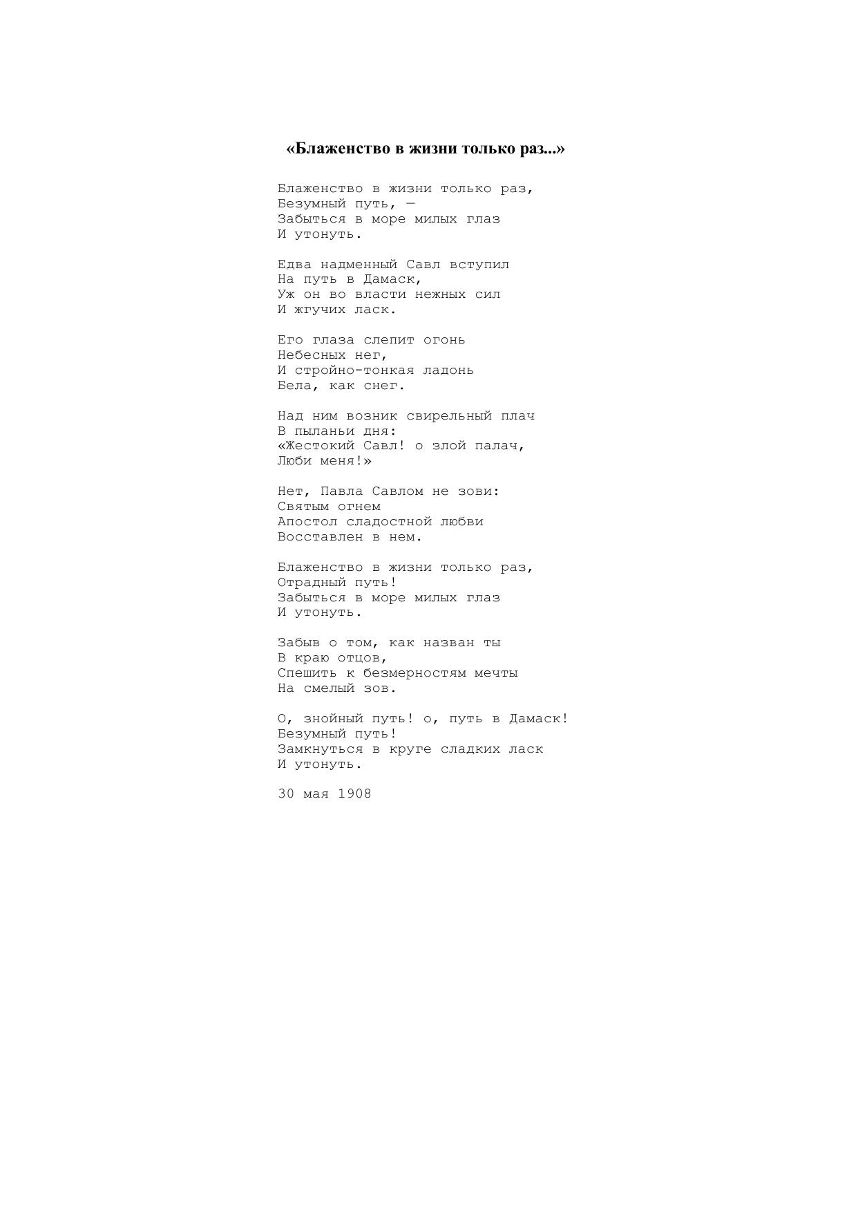 Блаженство в жизни только раз...