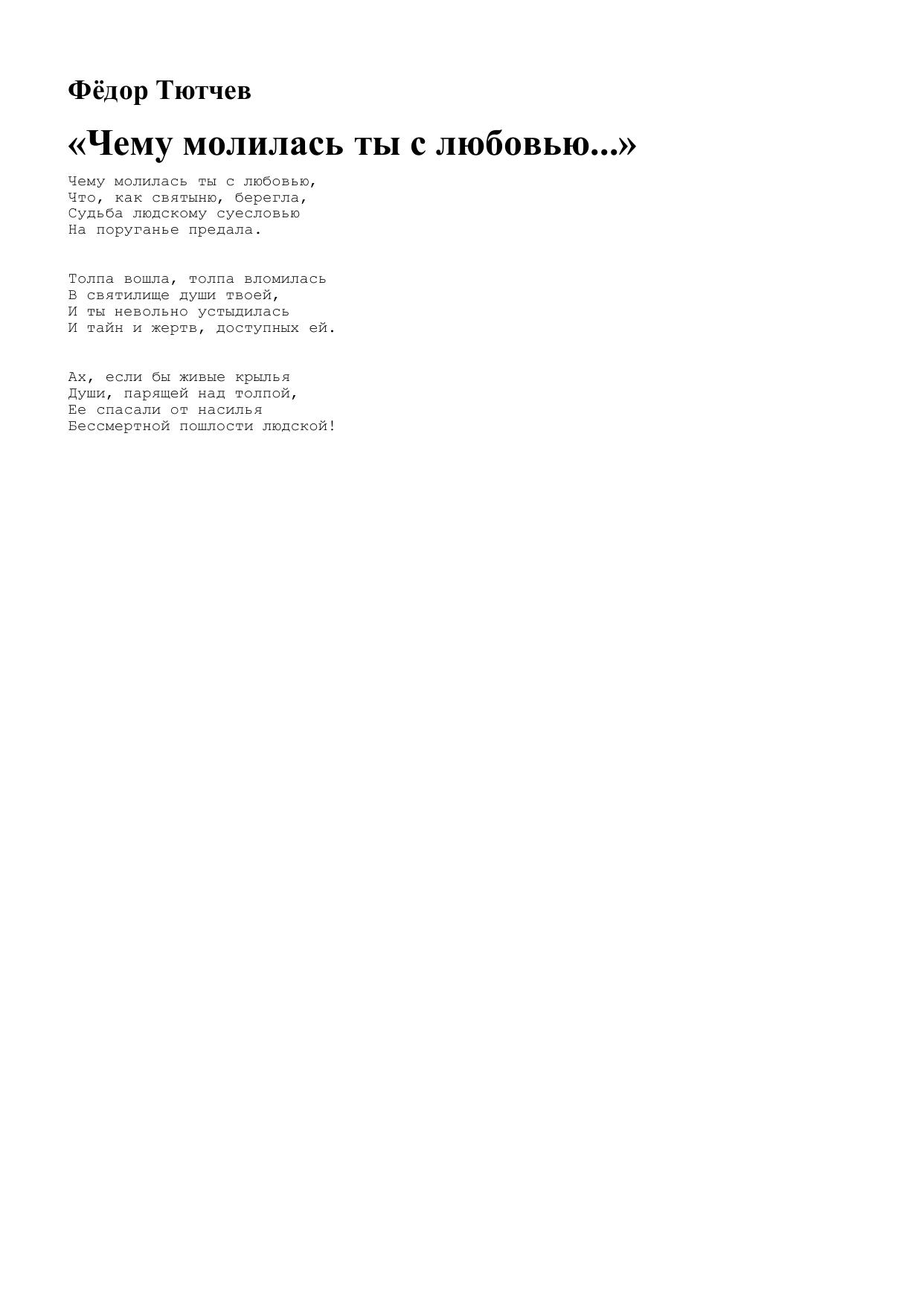 Чему молилась ты с любовью…
