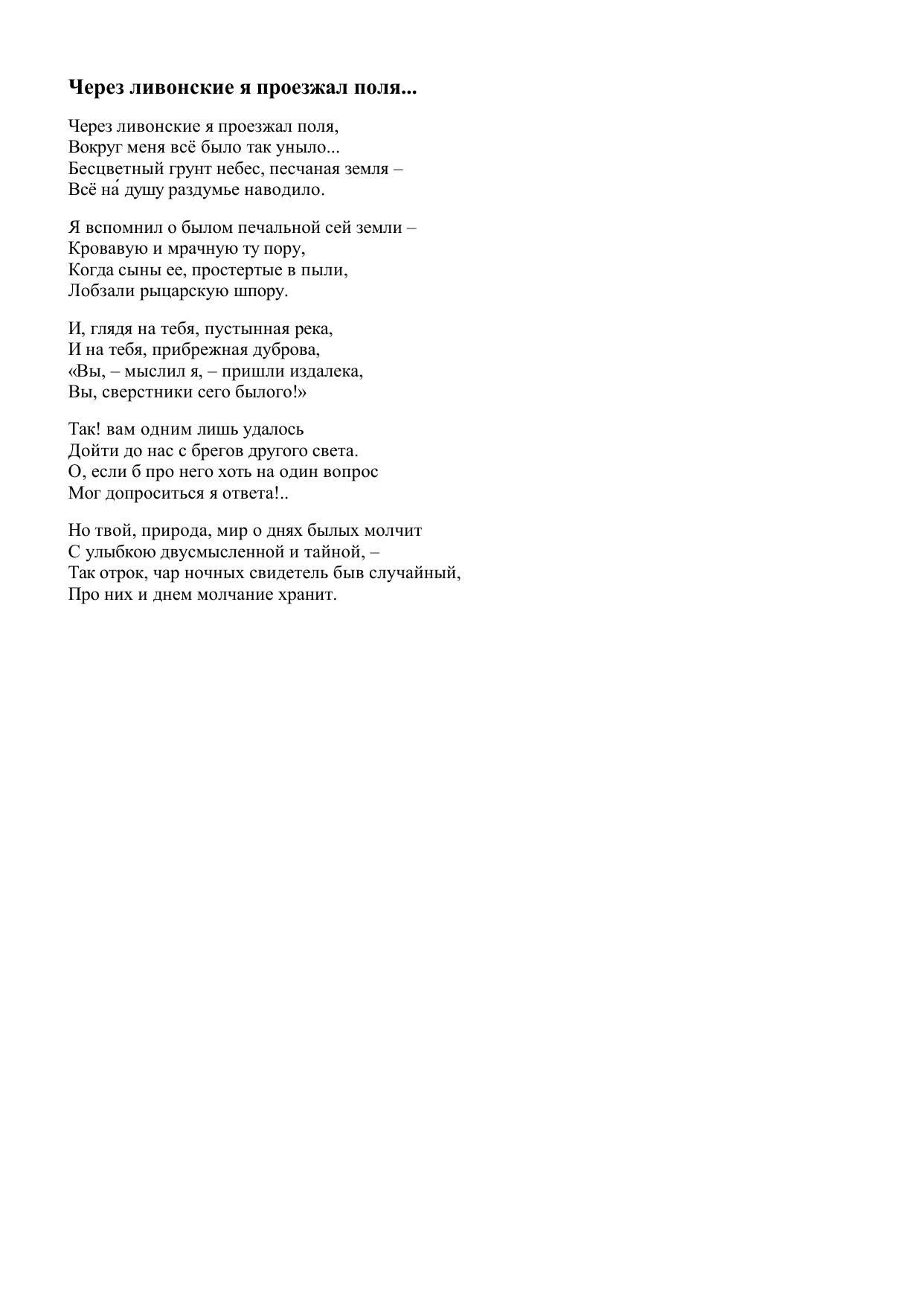 Через ливонские я проезжал поля…