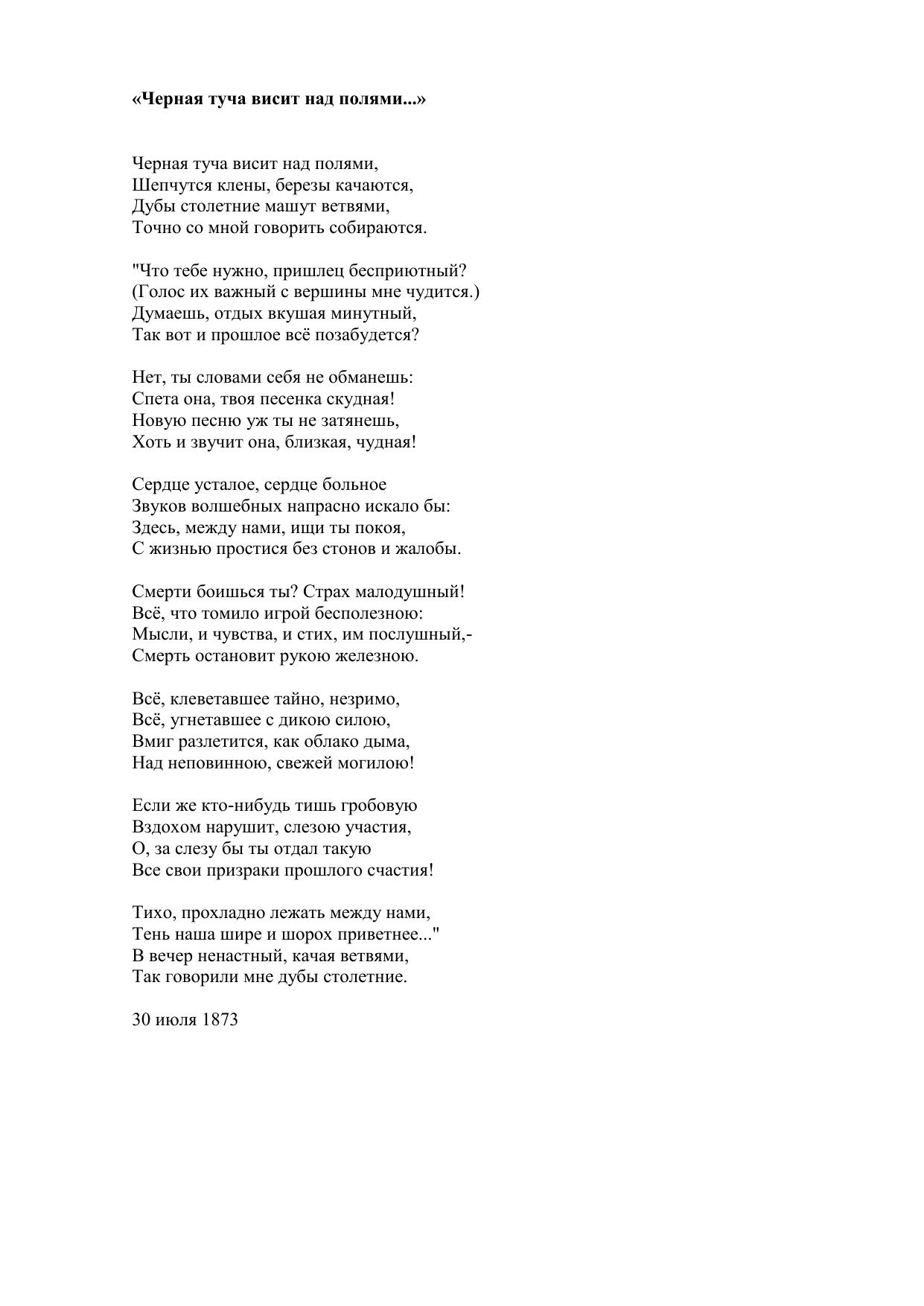 Черная туча висит над полями...
