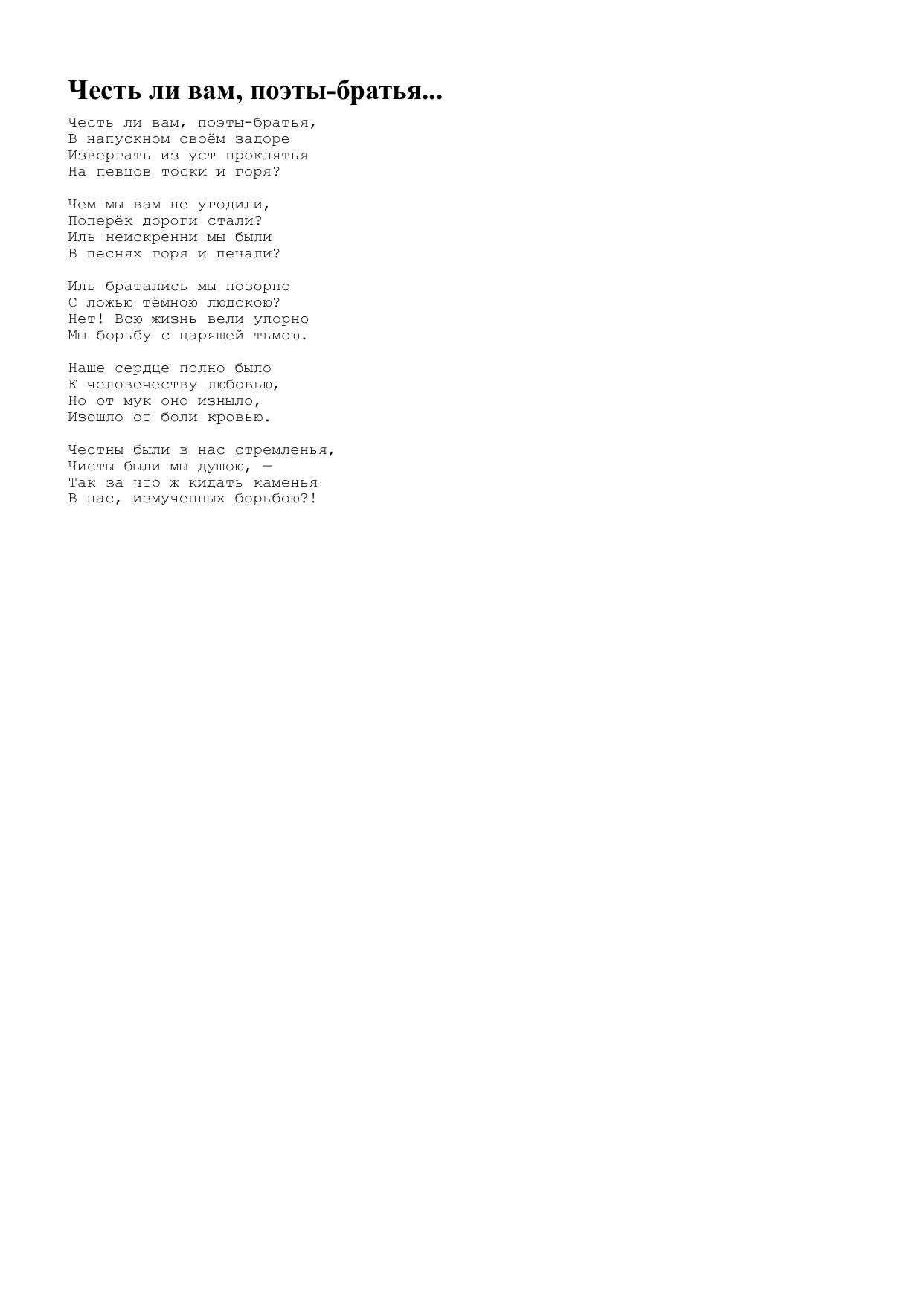 Честь ли вам, поэты-братья...