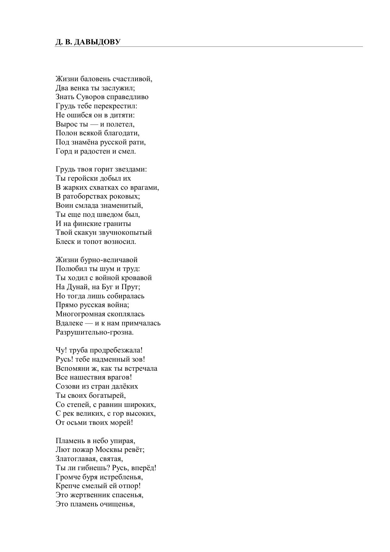 Д. В. Давыдову (Жизни баловень счастливой…)