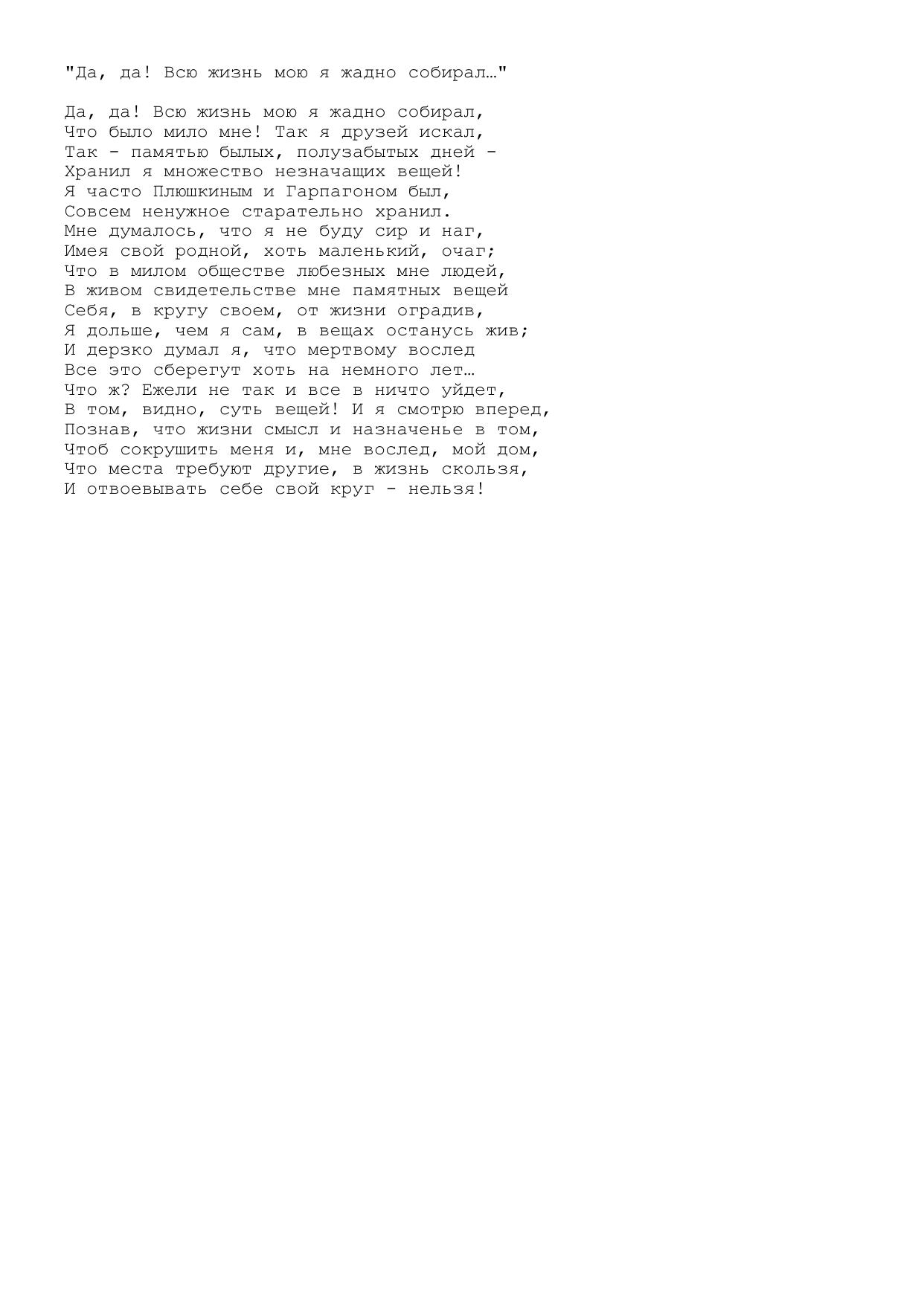 Да, да! Всю жизнь мою я жадно собирал…