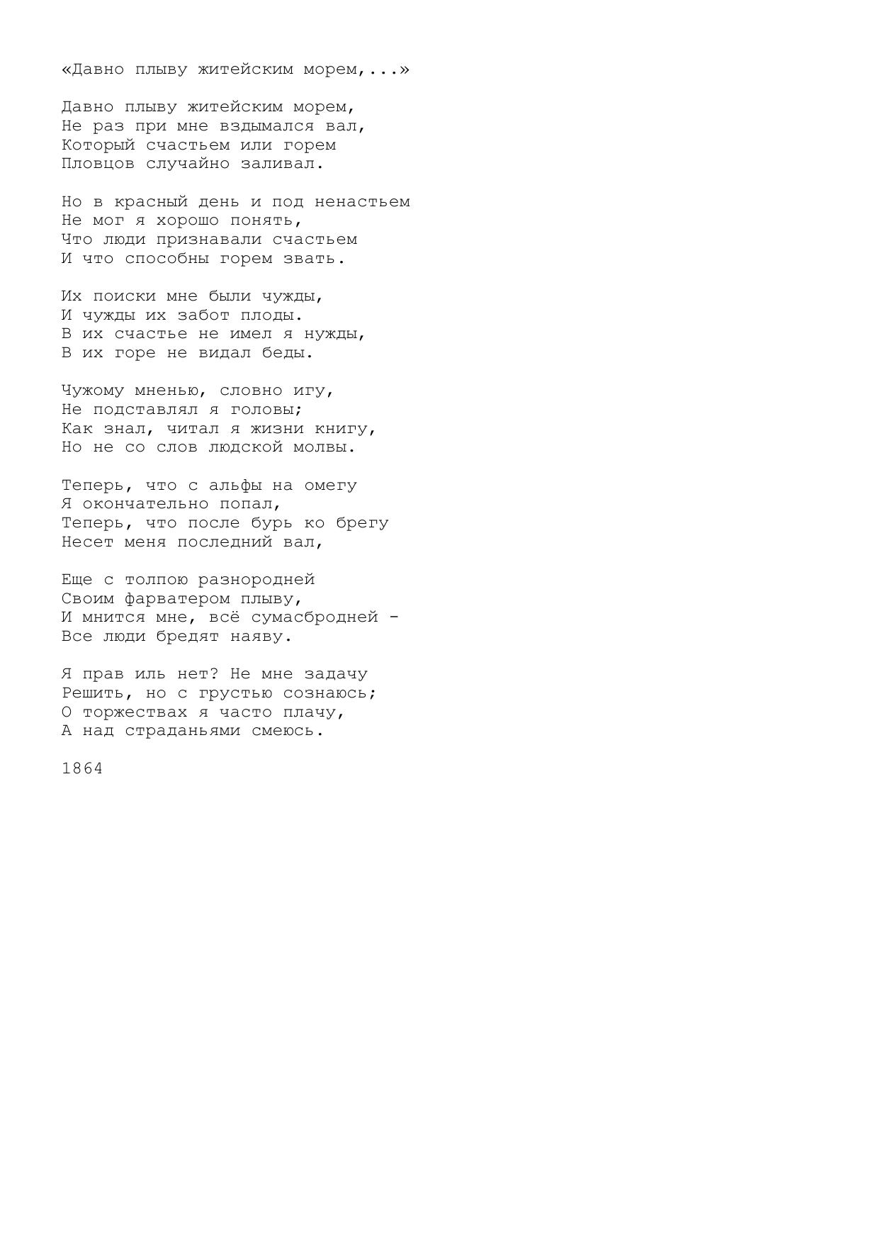 Давно плыву житейским морем,...