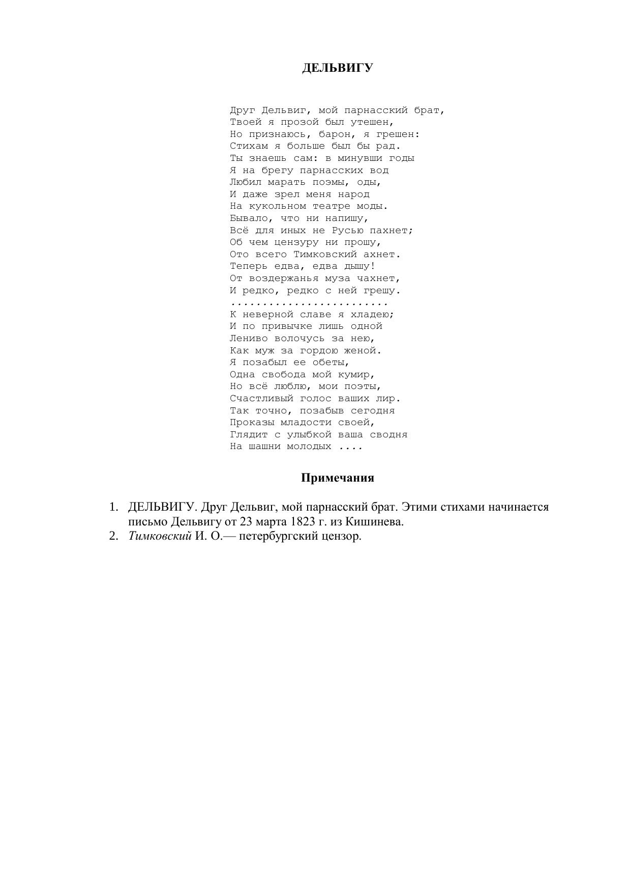 Дельвигу ("Друг Дельвиг, мой парнасский брат...")