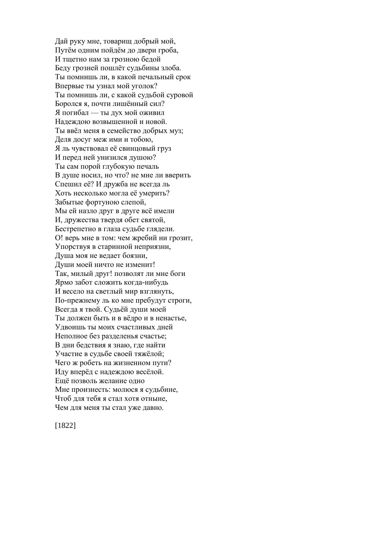 Дельвигу (Дай руку мне, товарищ добрый мой)