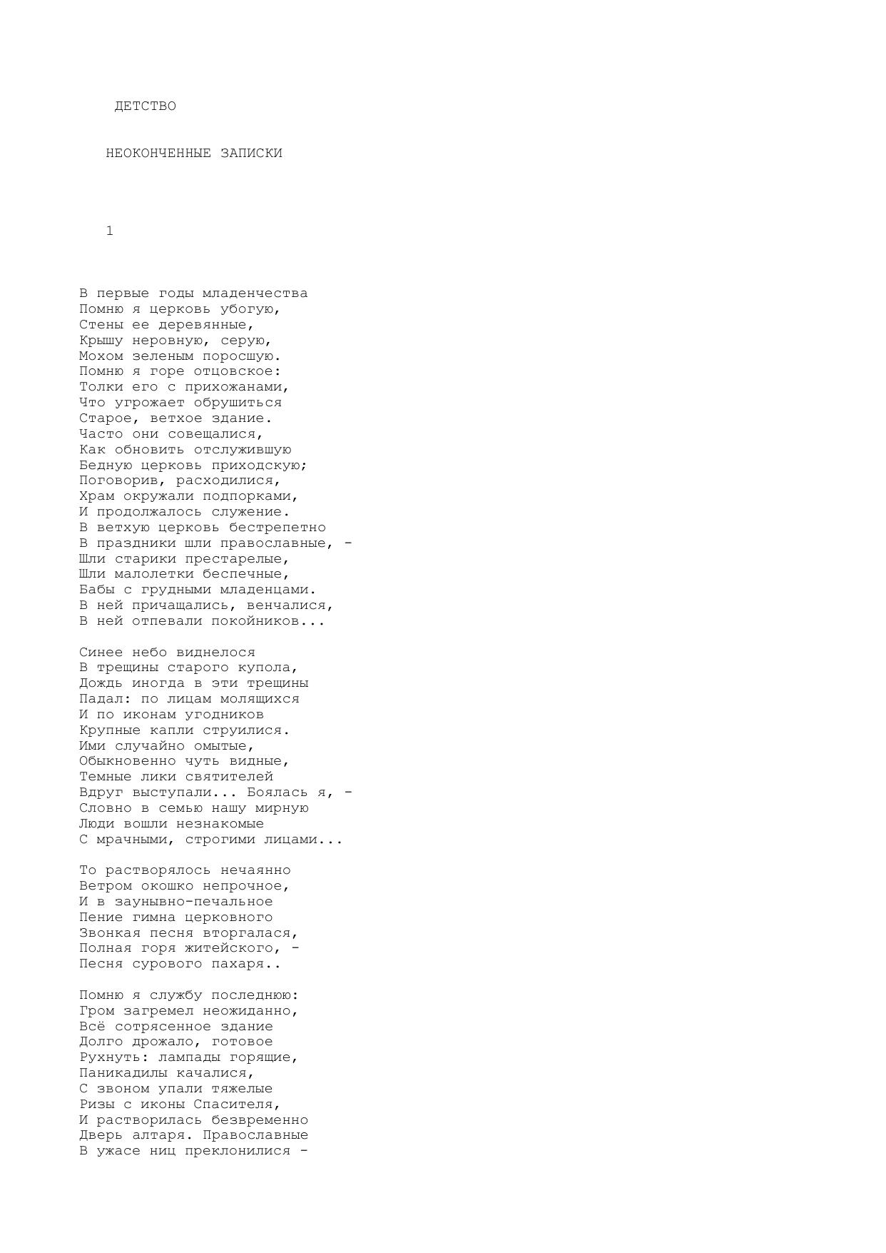 Детство (Неоконченные записки)