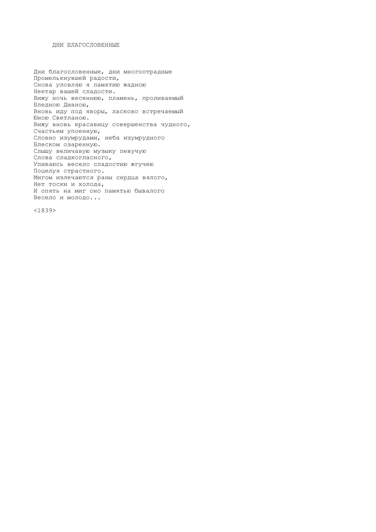 Дни благословенные (Дни благословенные, дни многоотрадные...)
