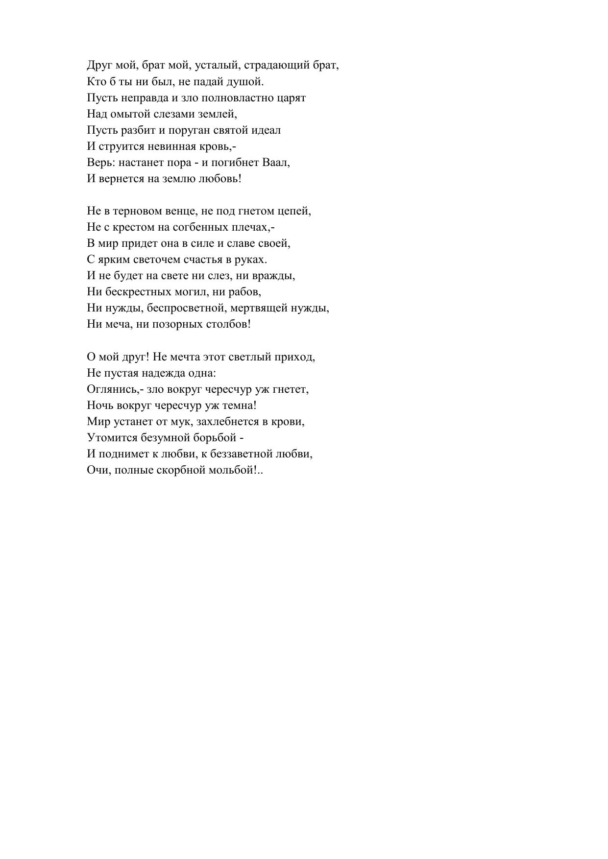 Друг мой, брат мой, усталый, страдающий брат...