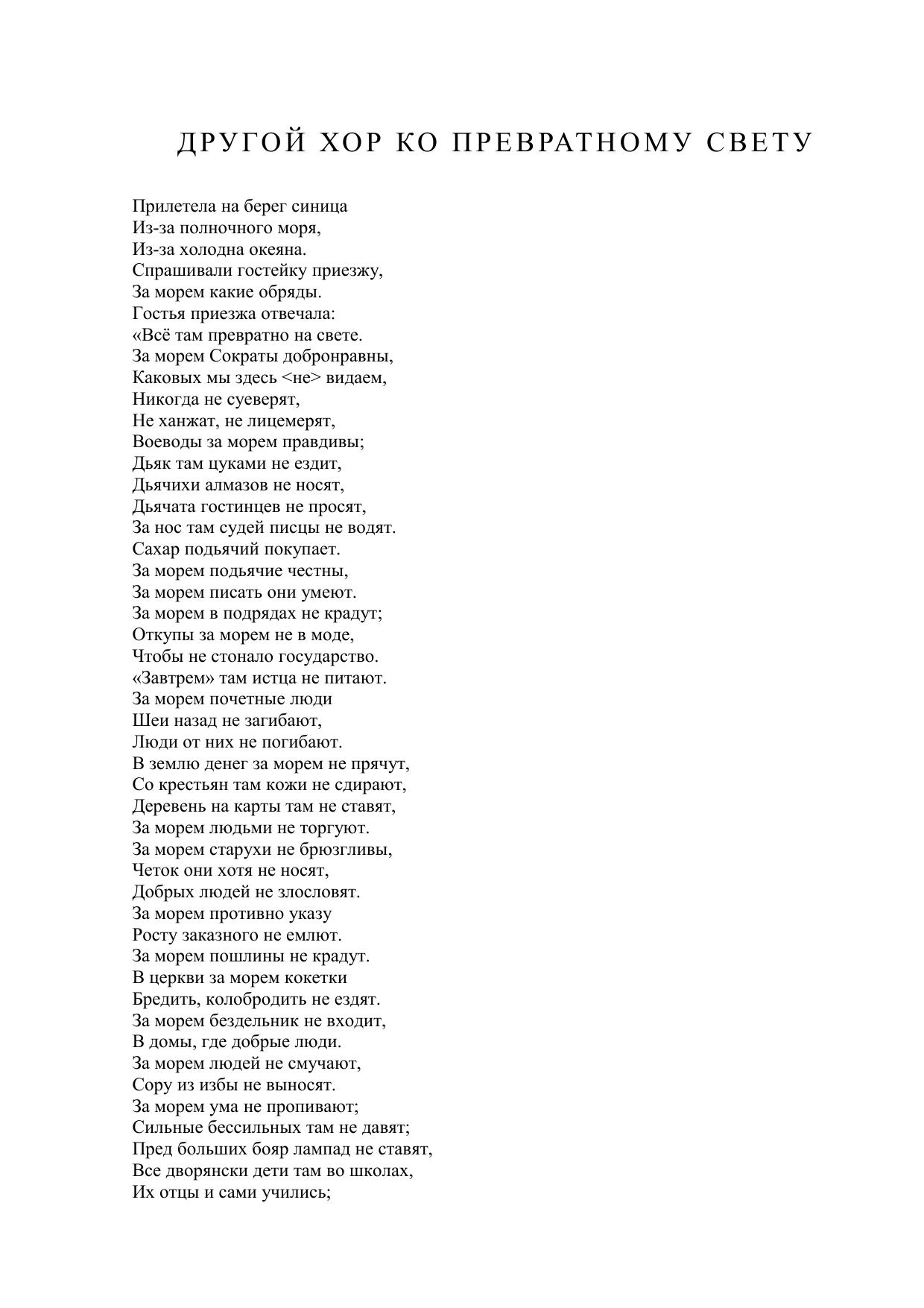 Другой хор ко превратному свету