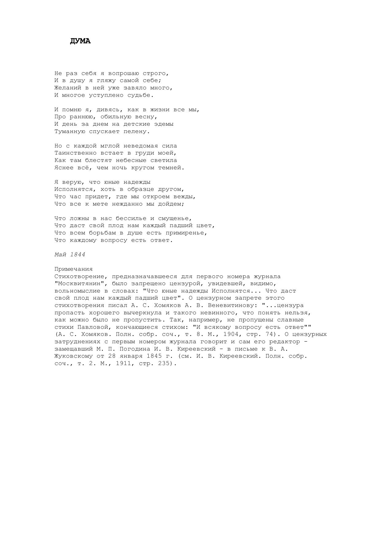 Дума (Не раз себя я вопрошаю строго...)