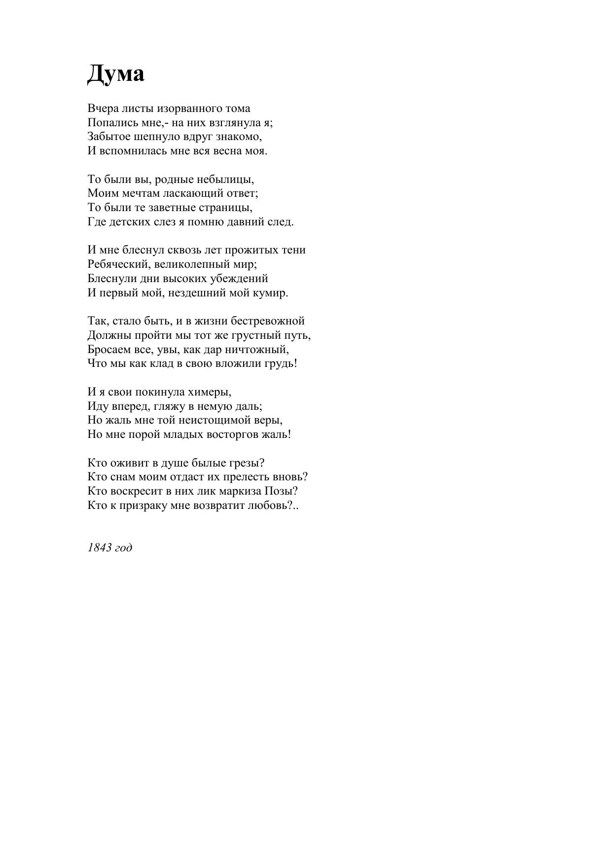 Дума (Вчера листы изорванного тома...)
