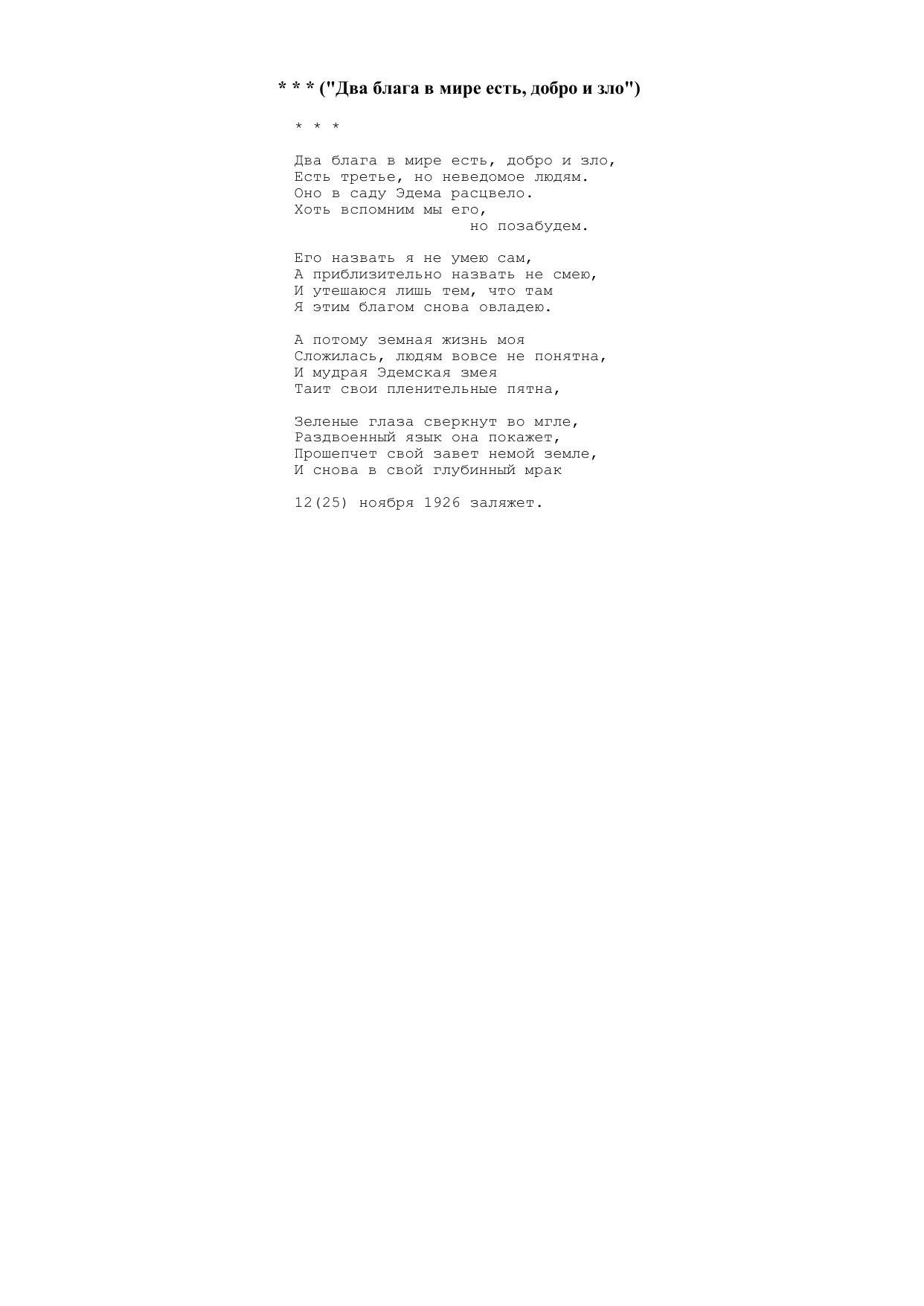 Два блага в мире есть, добро и зло