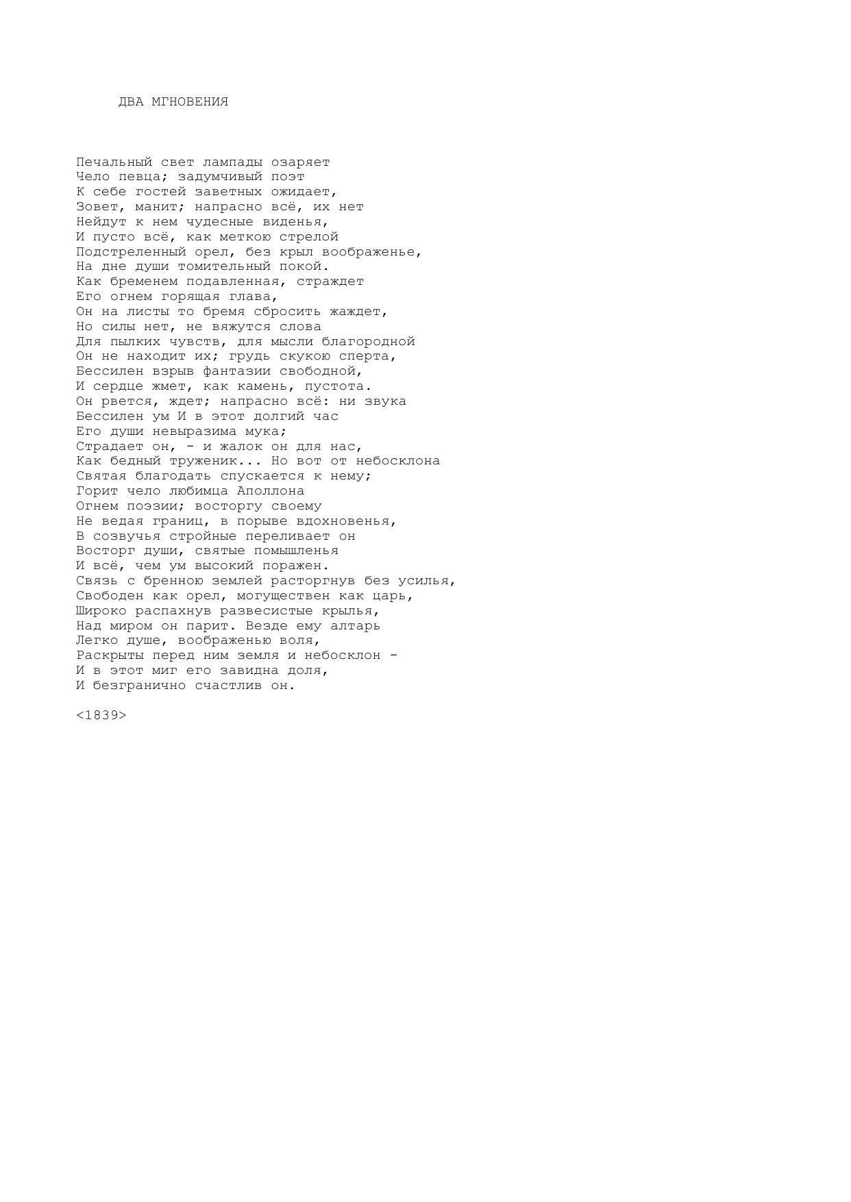 Два мгновения (Печальный свет лампады озаряет...)