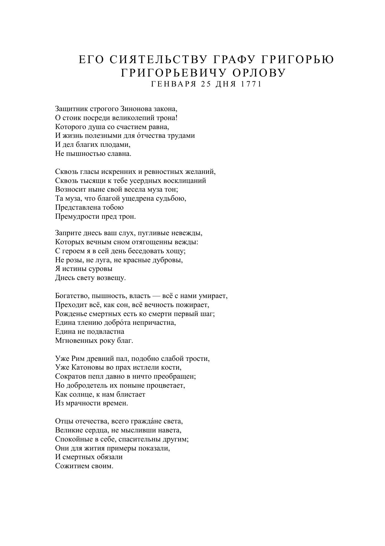 Его сиятельству графу Григорью Григорьевичу Орлову генваря 25 дня 1771