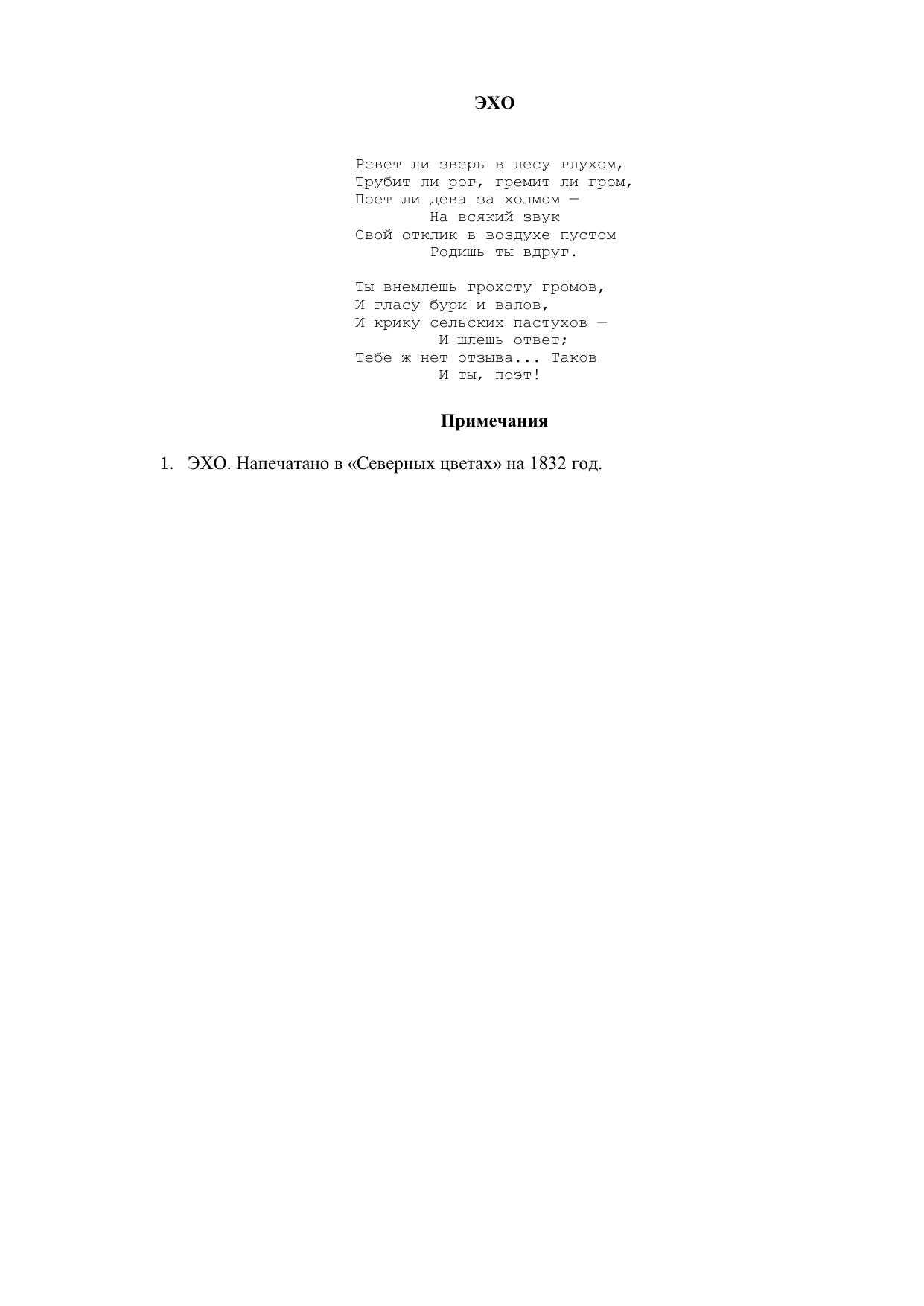 Эхо ("Ревет ли зверь в лесу глухом...")