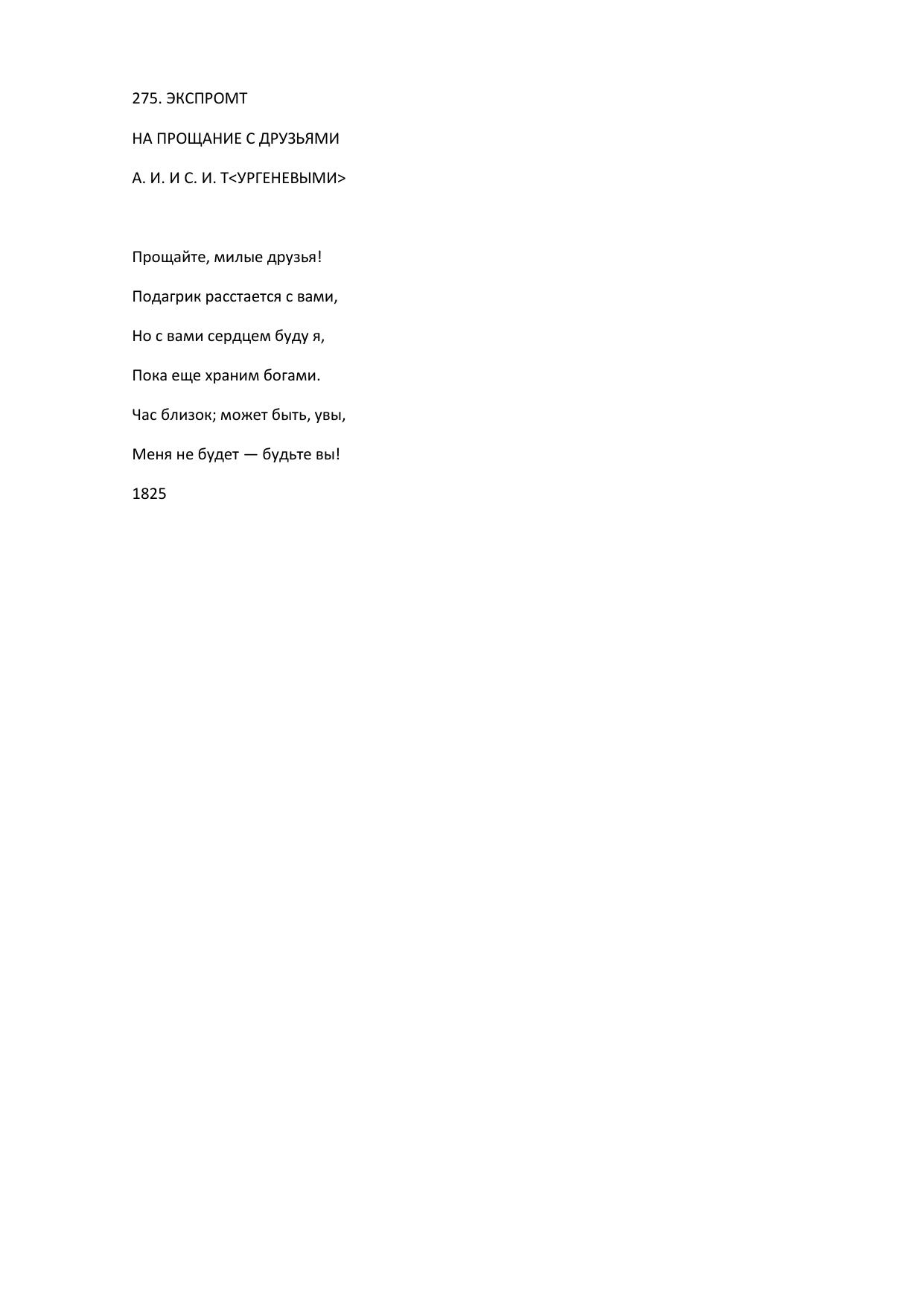 Экспромт на прощание с друзьями А. И. и С. И. Т<ургеневыми>