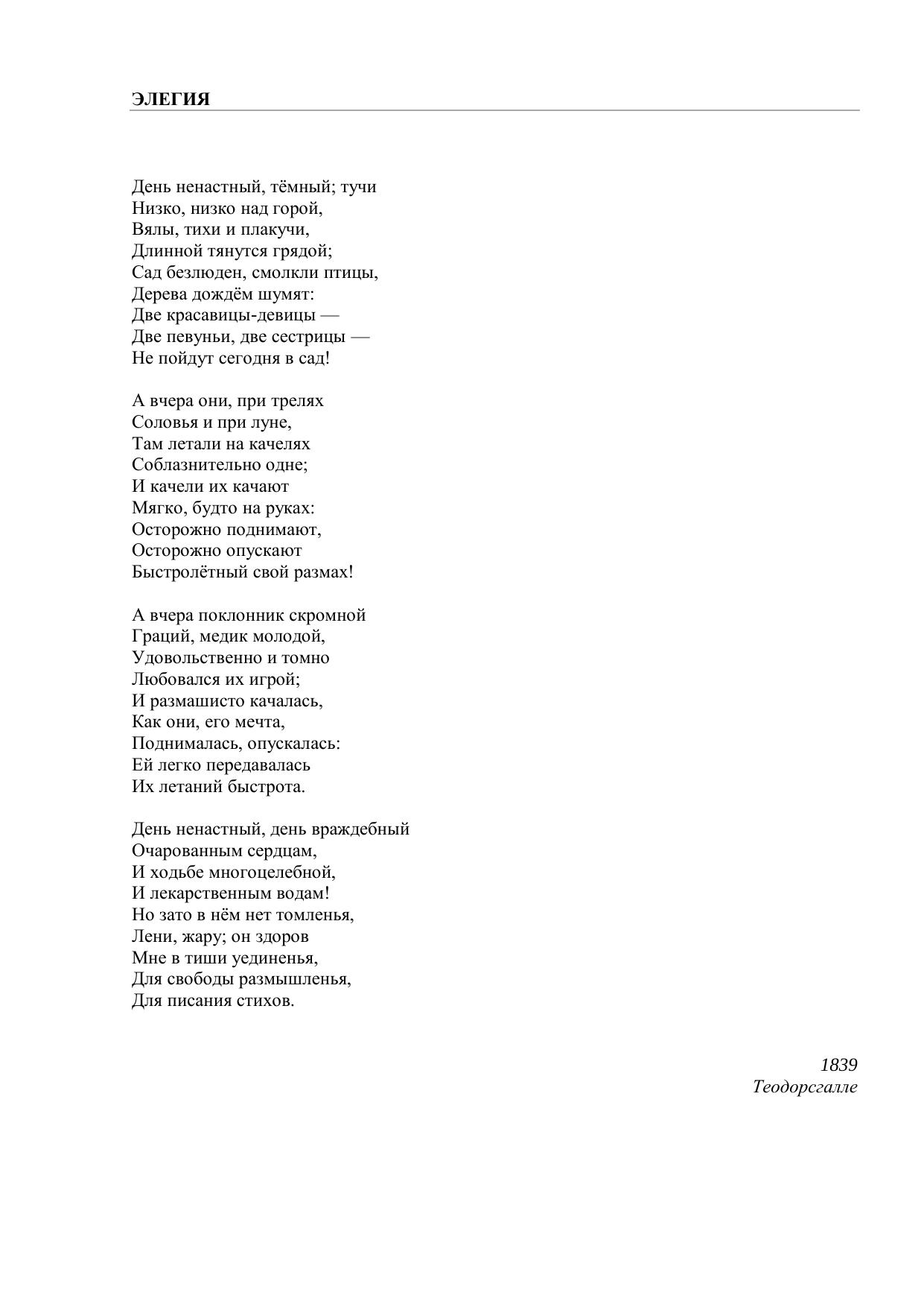 Элегия (День ненастный, тёмный тучи…)