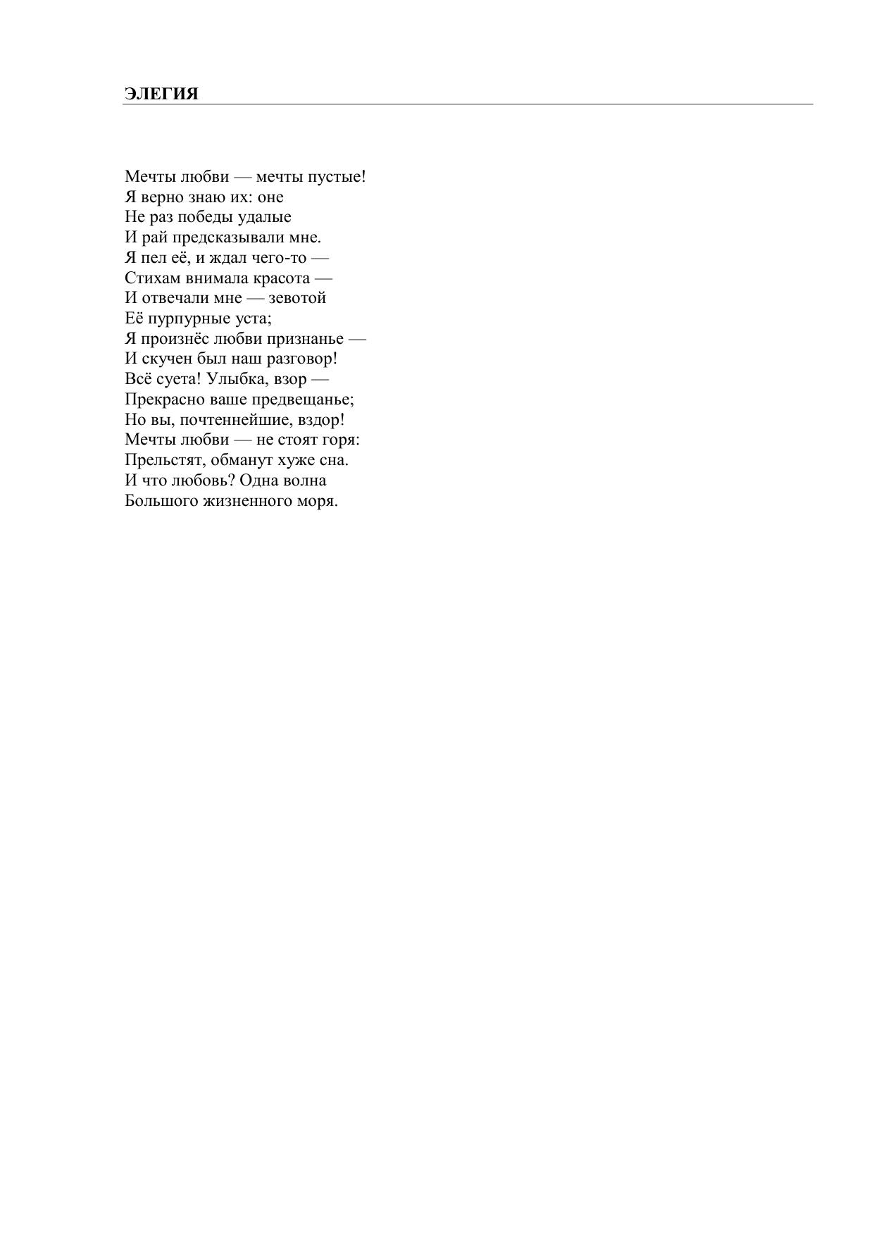 Элегия (Мечты любви — мечты пустые!)