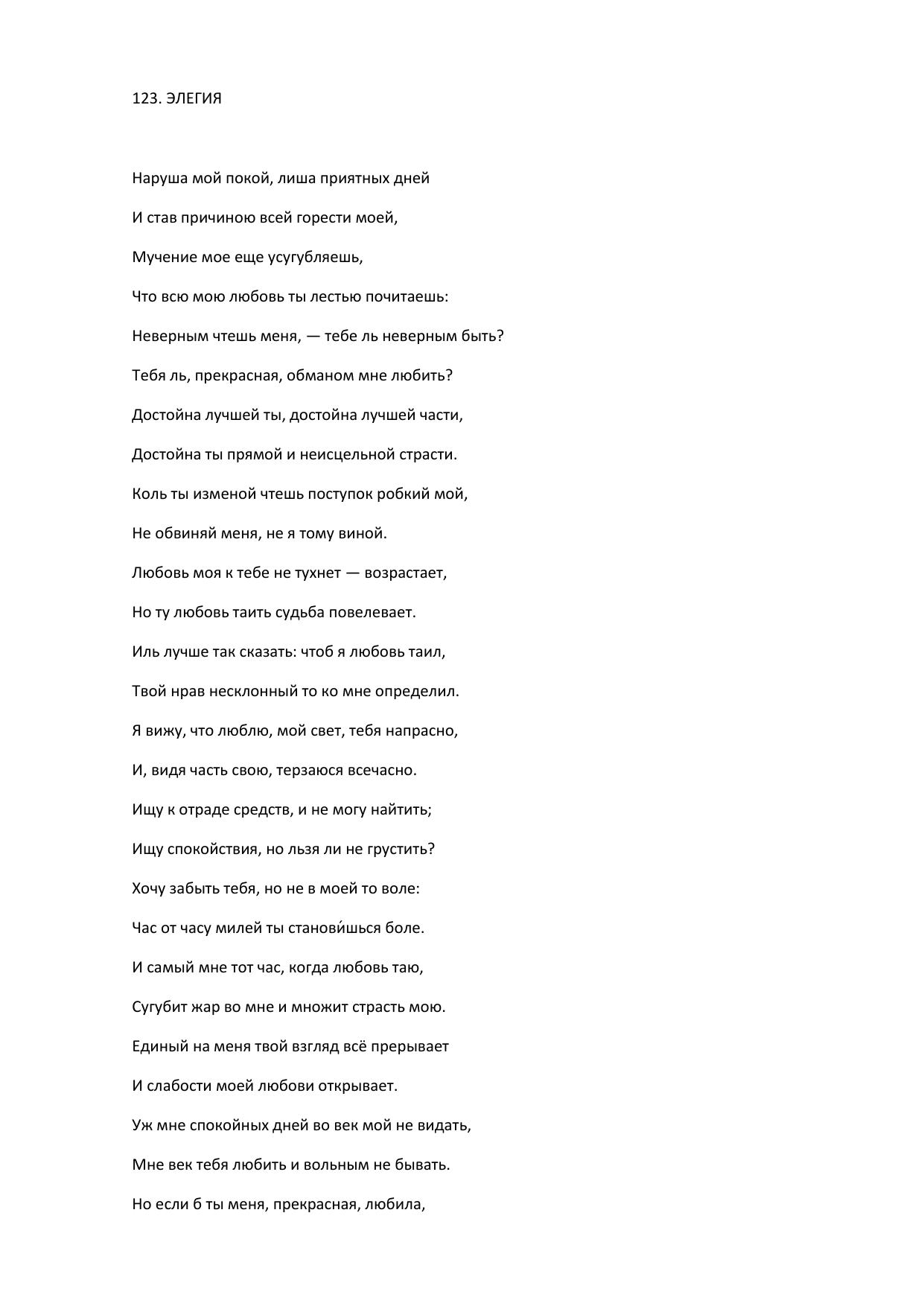 Элегия (Наруша мой покой, лиша приятных дней...)