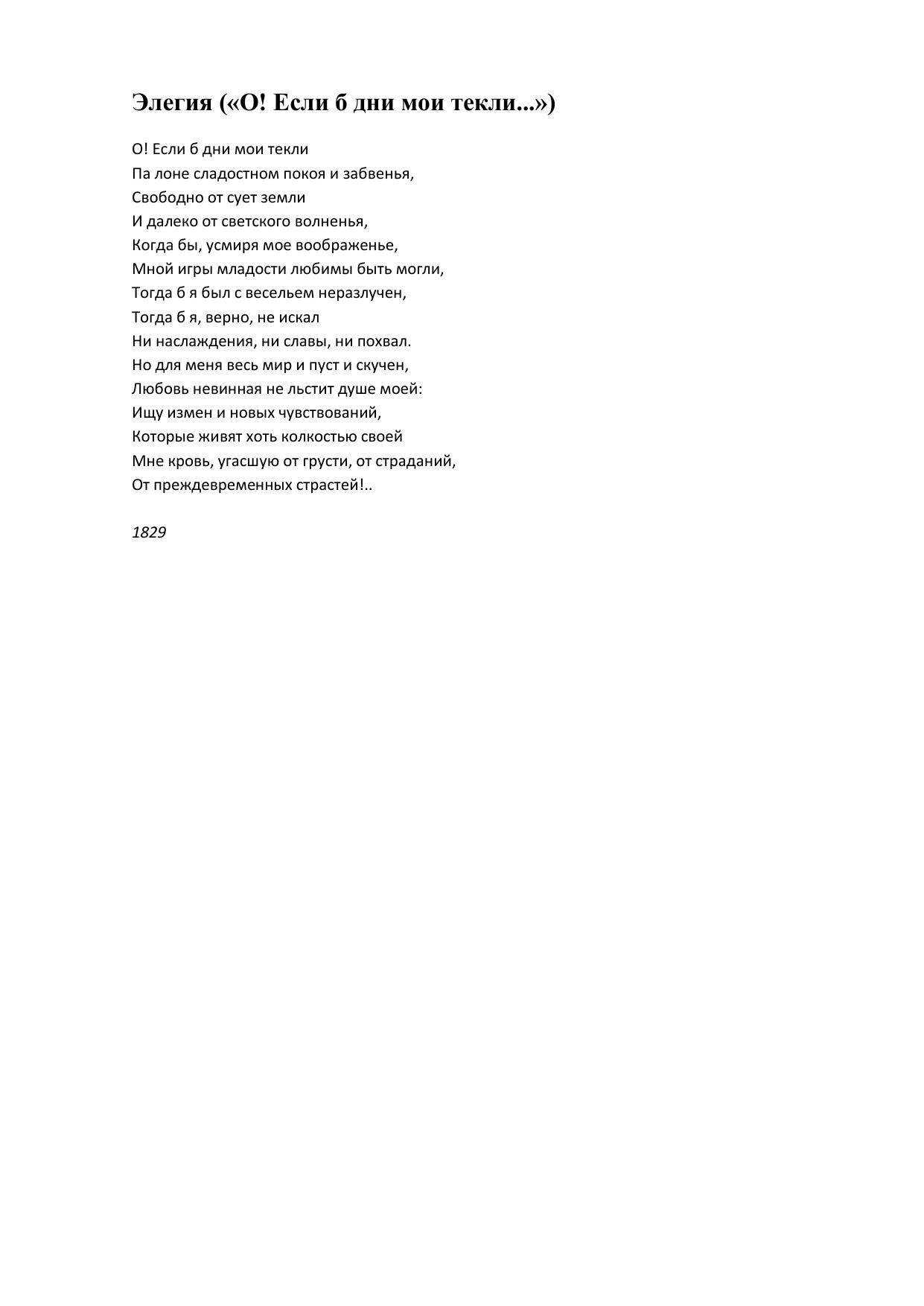 Элегия (О! Если б дни мои текли...)