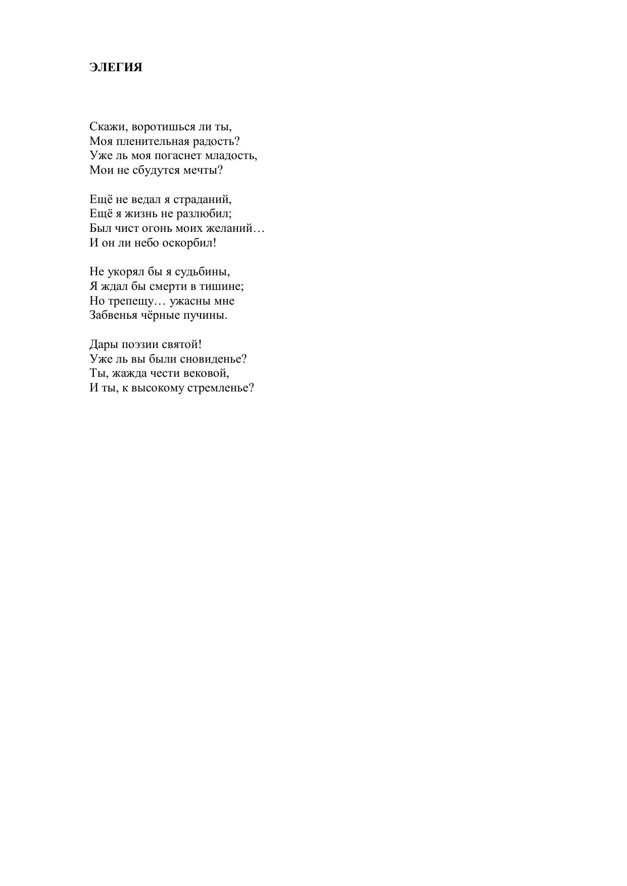 Элегия (Скажи, воротишься ли ты…)