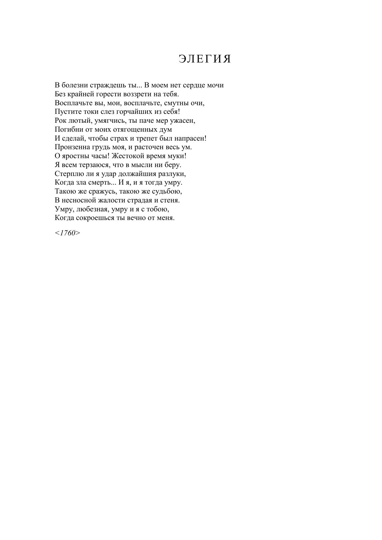 Элегия (В болезни страждешь ты... В моем нет сердце мочи...)