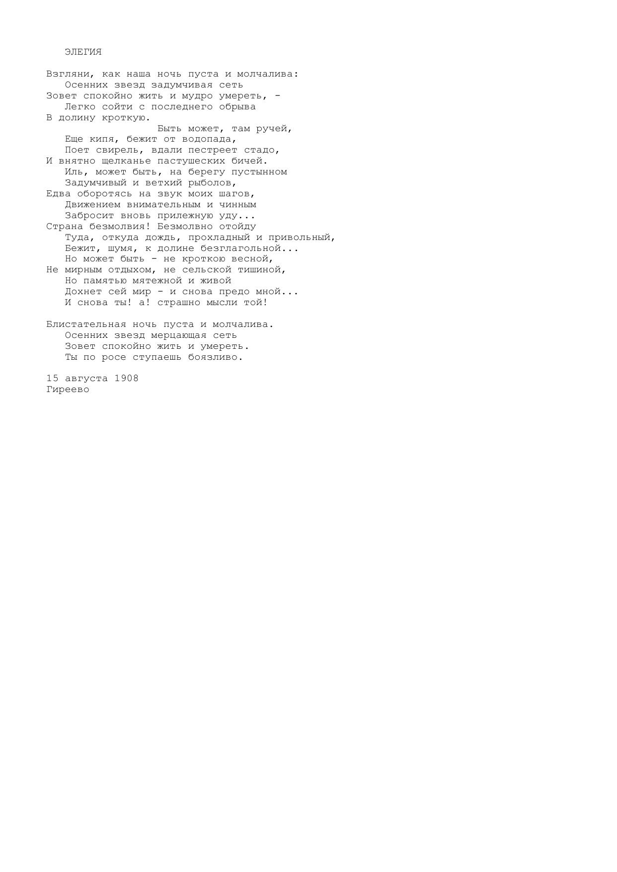 Элегия (Взгляни, как наша ночь пуста и молчалива...)