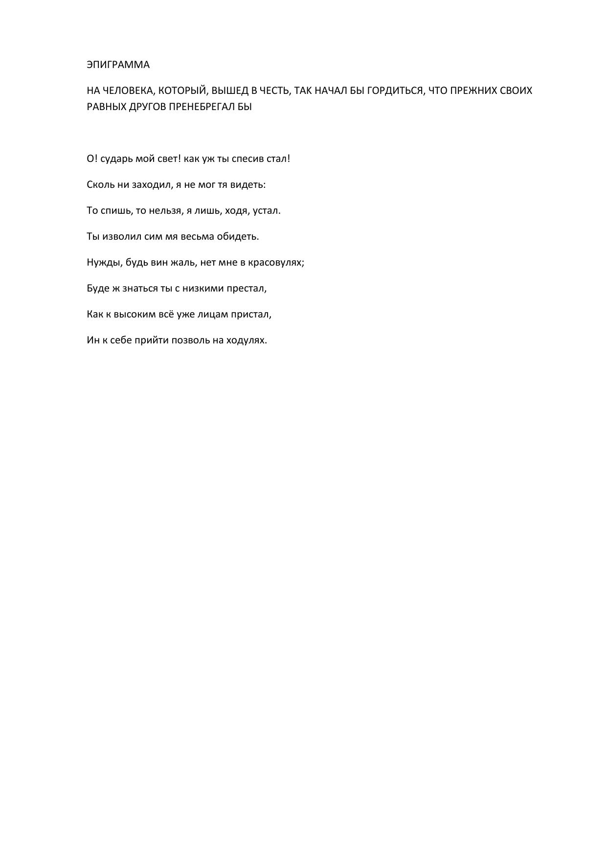 Эпиграмма на человека, который, вышед в честь, так начал бы гордиться, что прежних своих равных другов пренебрегал бы