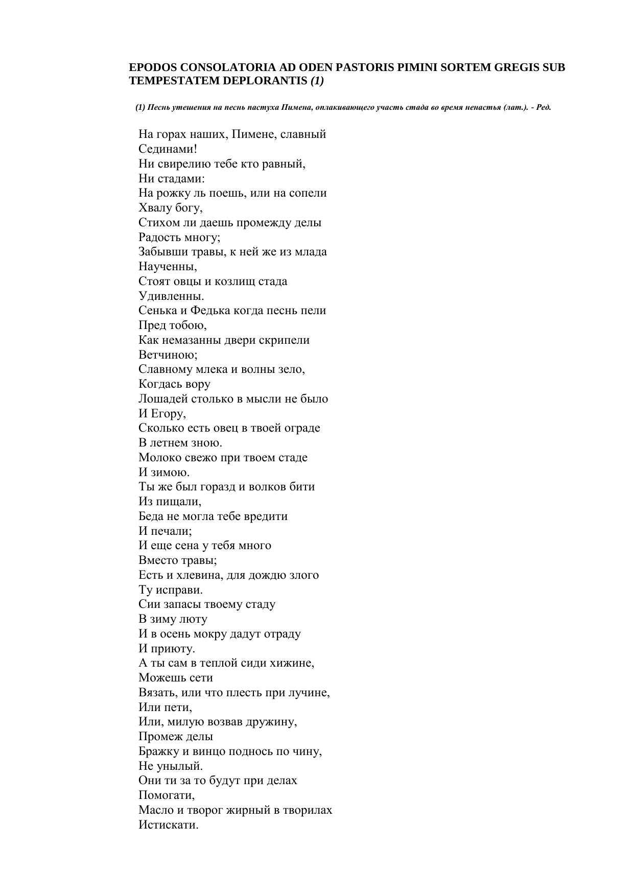 Epodos consolatoria ad oden Pastoris Pimini sortem gregissub tempestatem deplorantis