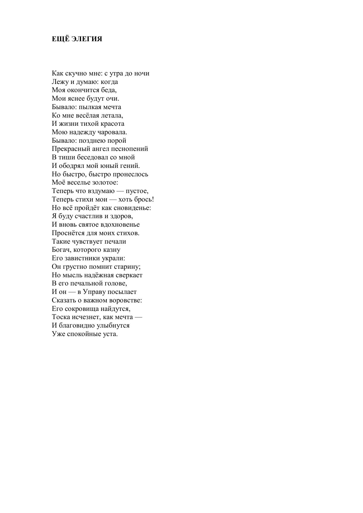 Ещё элегия (Как скучно мне: с утра до ночи…)