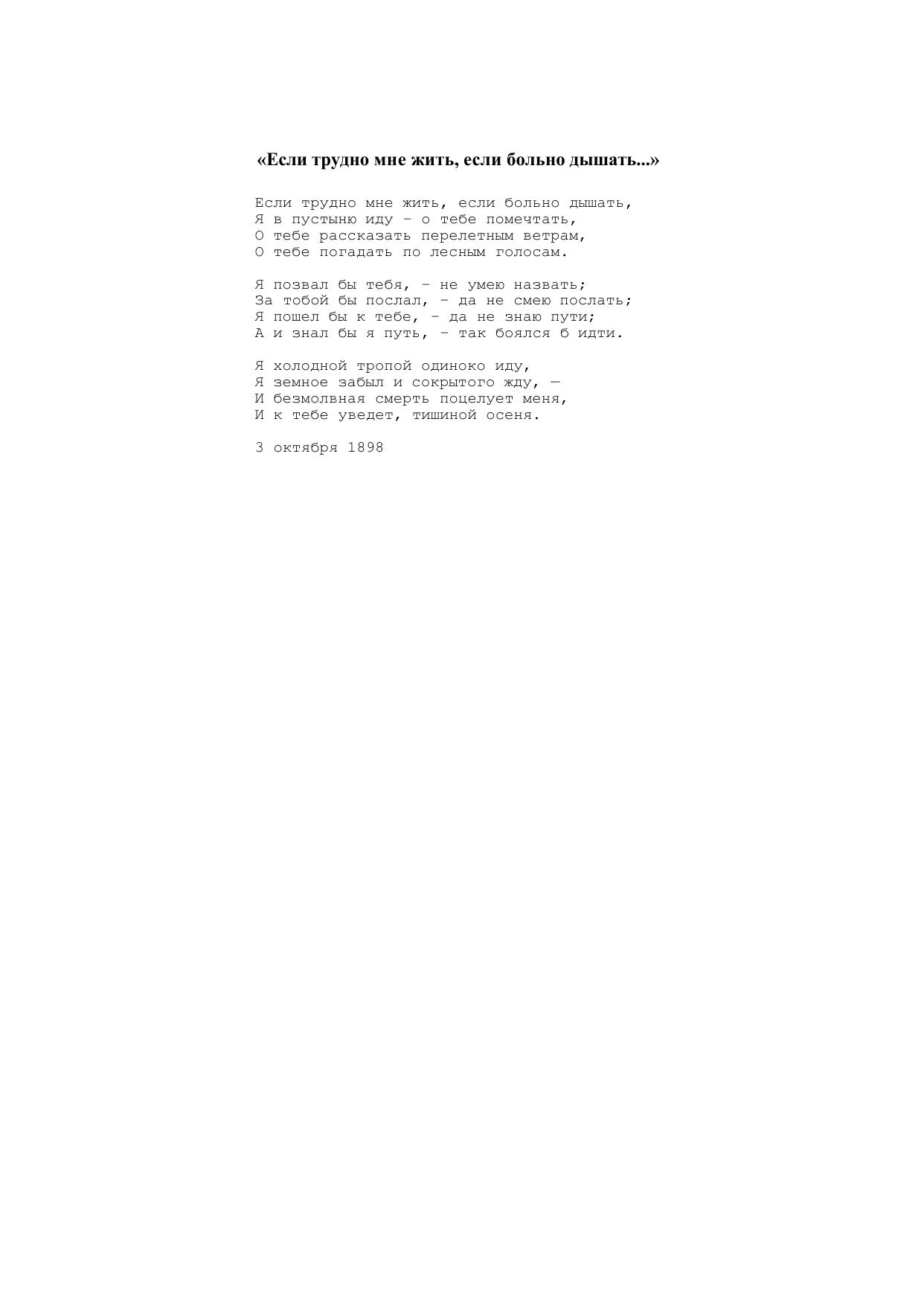 Если трудно мне жить, если больно дышать...