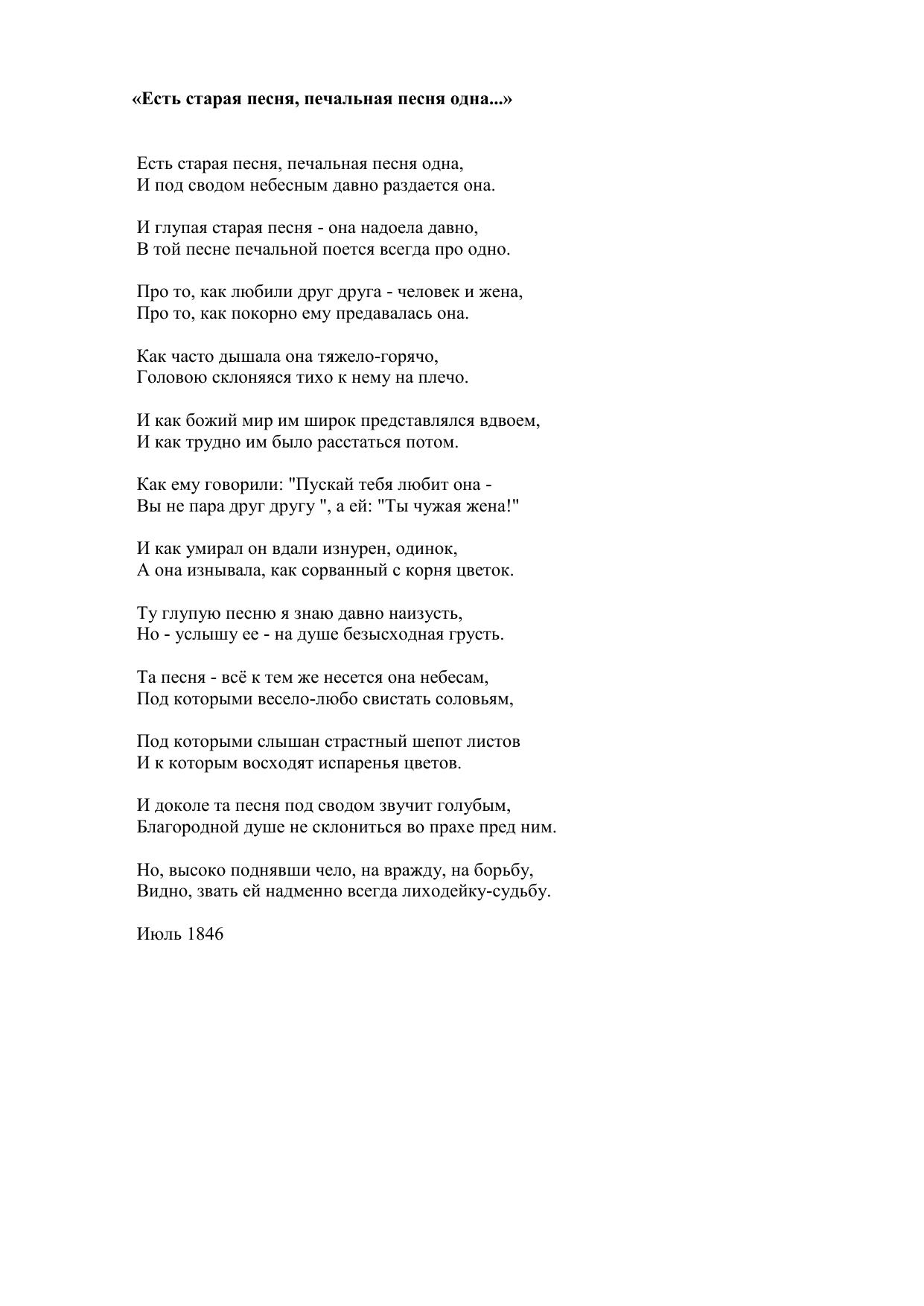 Есть старая песня, печальная песня одна