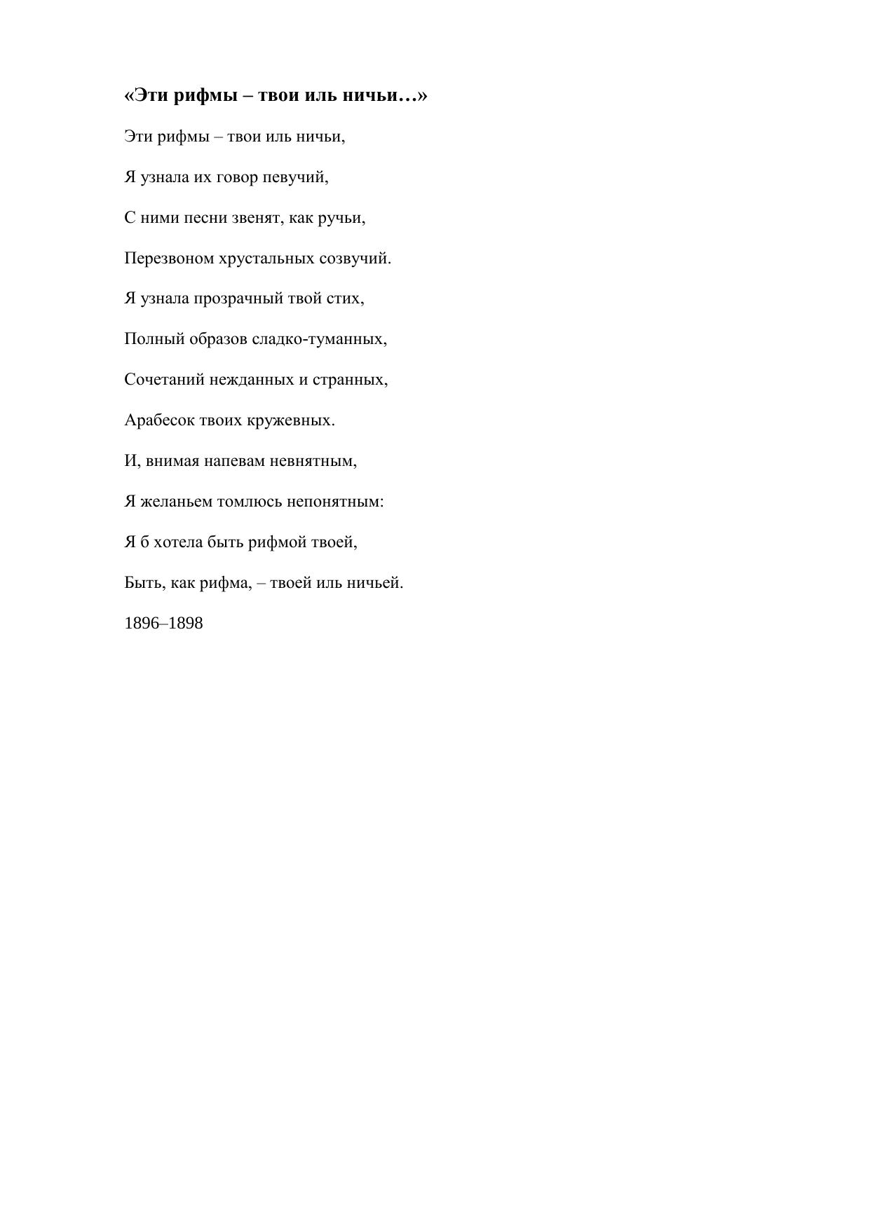 Эти рифмы – твои иль ничьи…