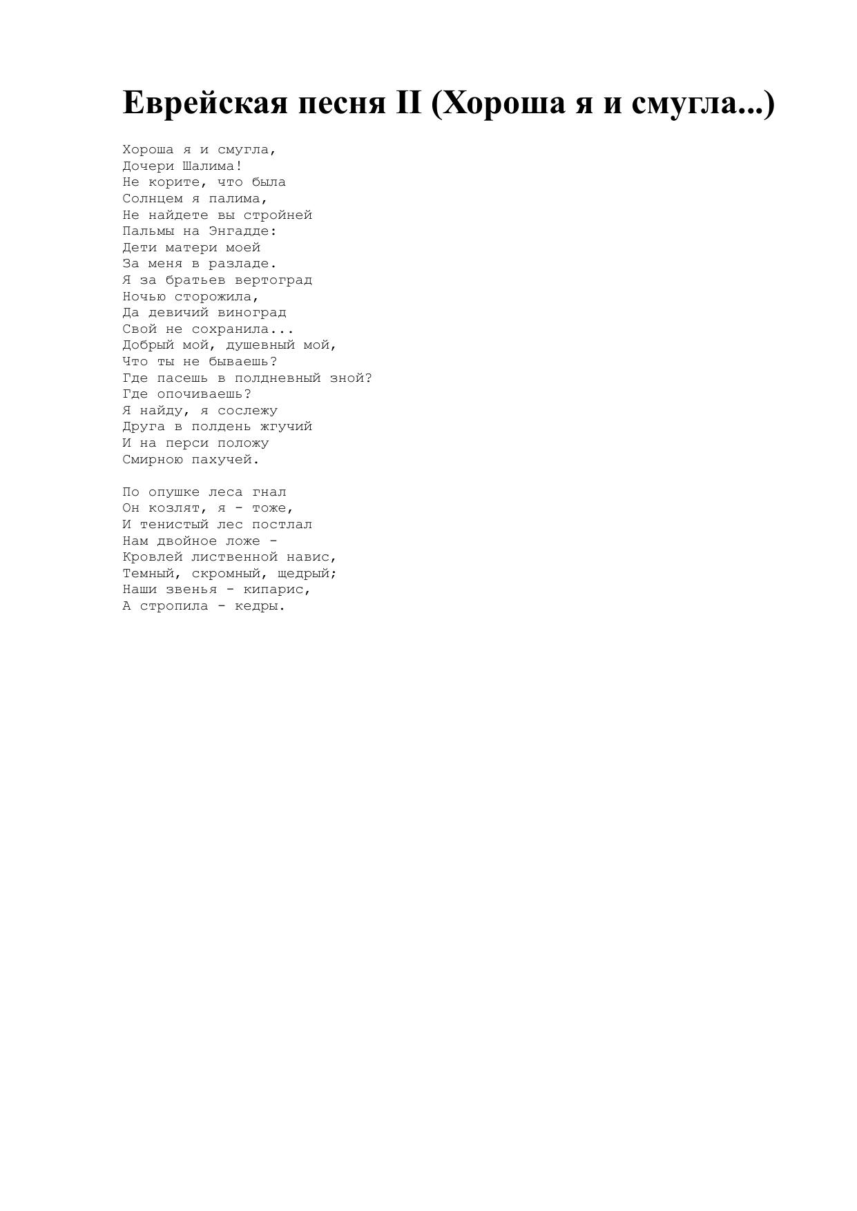 Еврейская песня II (Хороша я и смугла...)
