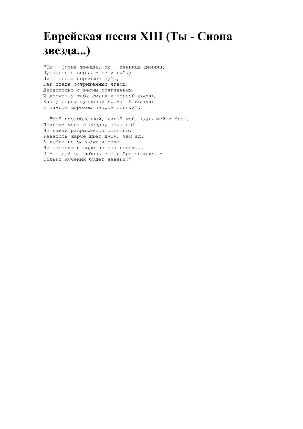 Еврейская песня XIII (Ты - Сиона звезда...)
