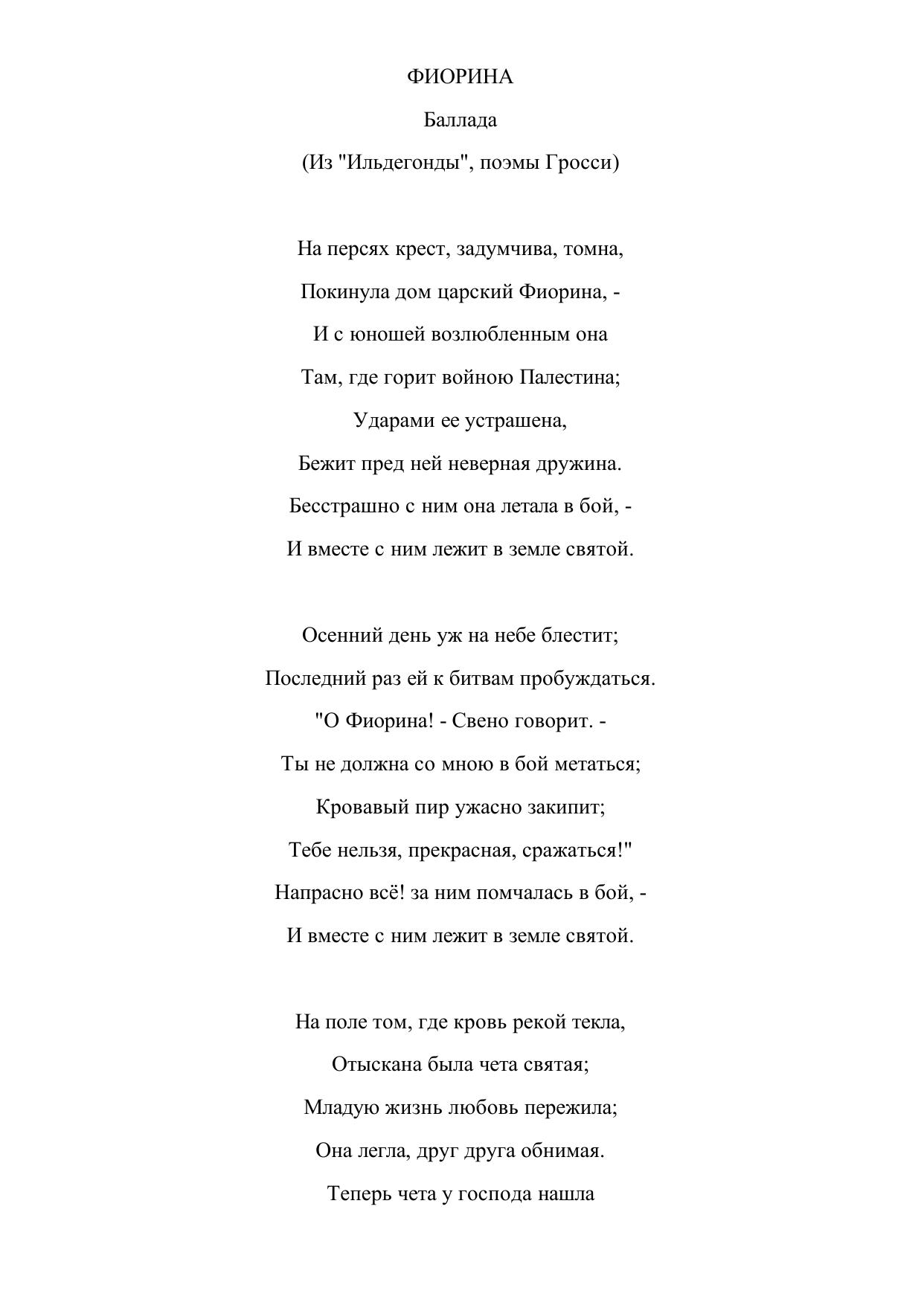 Фиорина. Баллада (Из "Ильдегонды", поэмы Гросси)