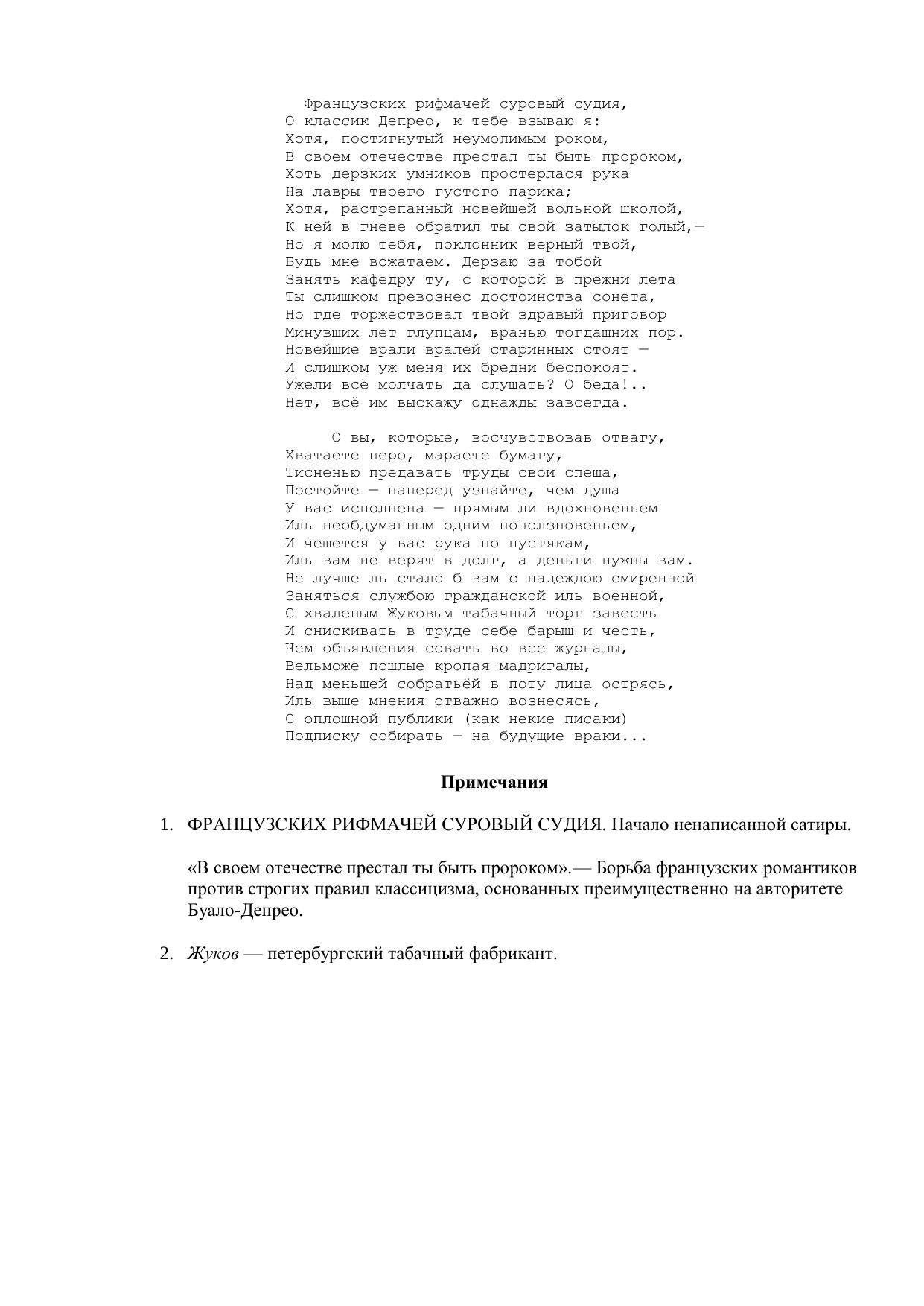 Французских рифмачей суровый судия...