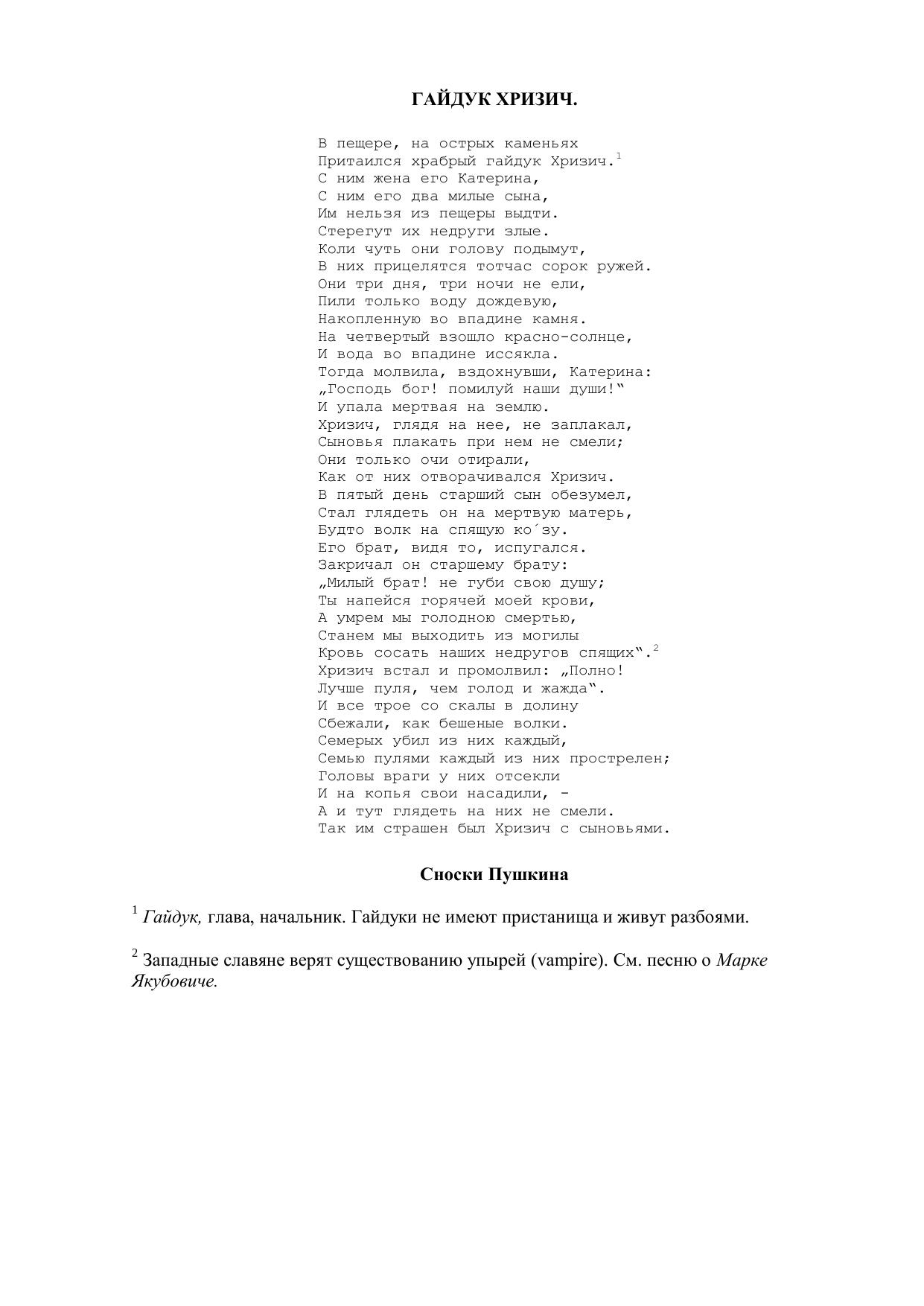 Гайдук Хризич ("В пещере, на острых каменьях...")