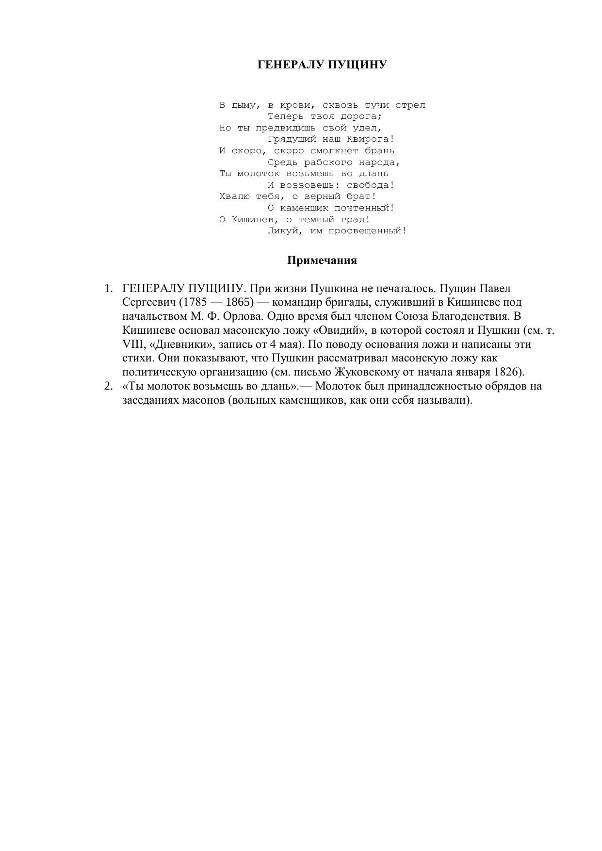 Генералу Пущину ("В дыму, в крови сквозь тучи стрел...")