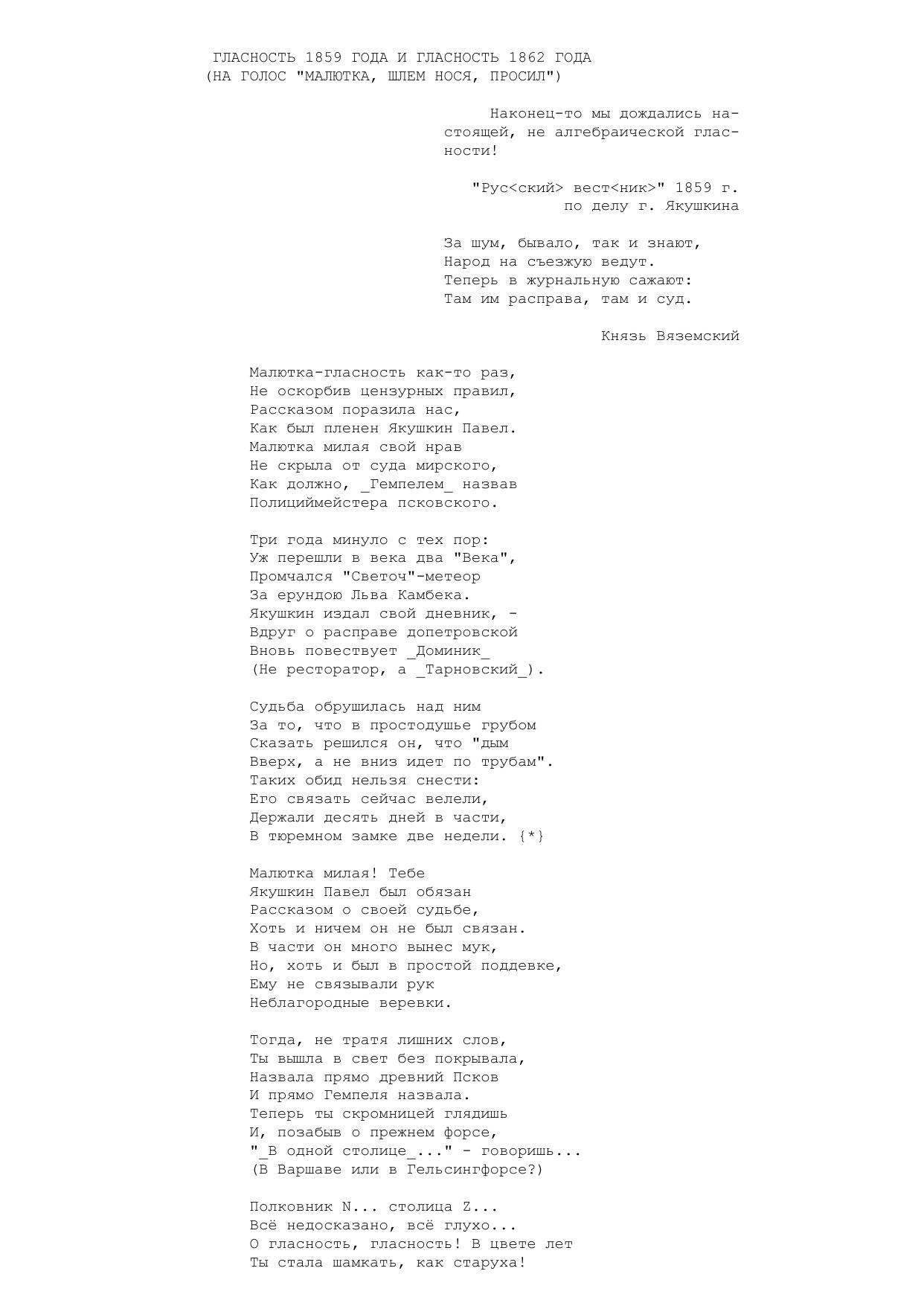 Гласность 1859 года и гласность 1862 года (На голос "Малютка, шлем нося, просил")