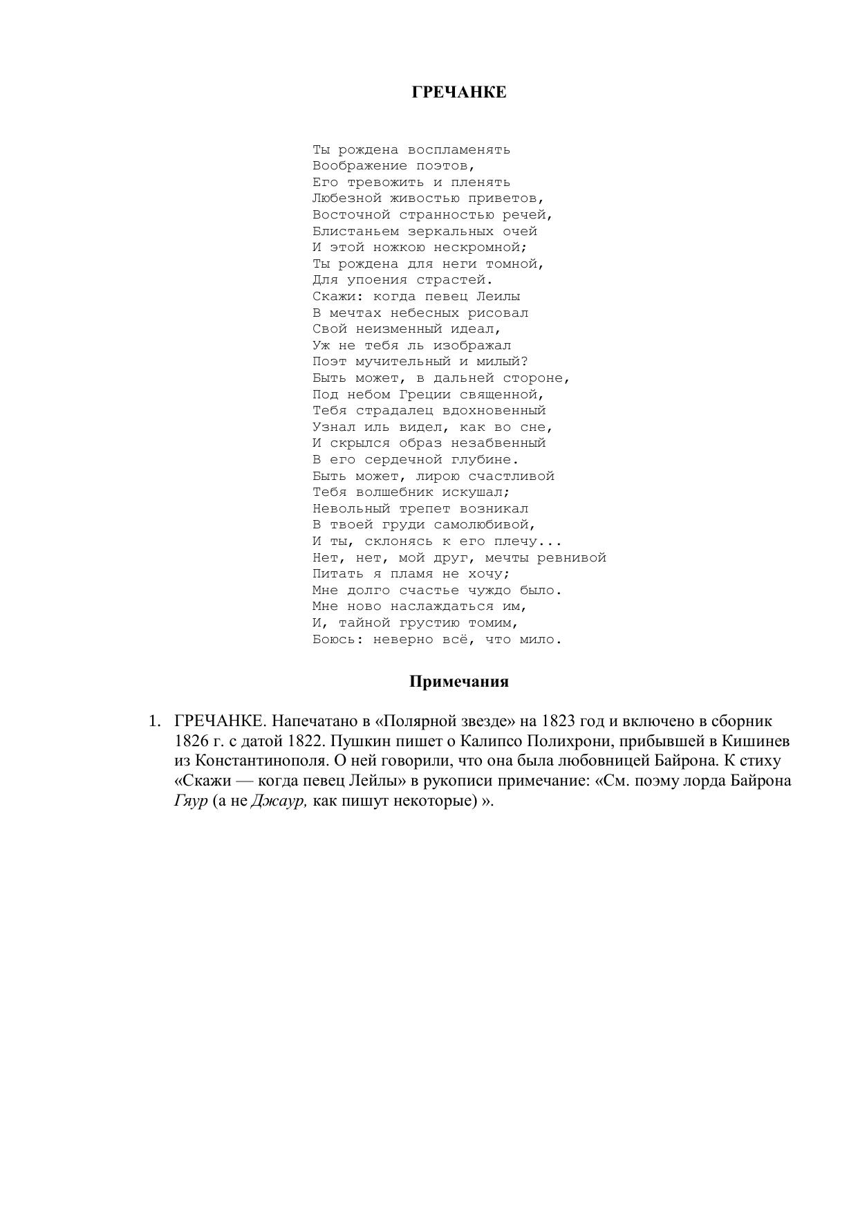 Гречанке ("Ты рождена воспламенять...")