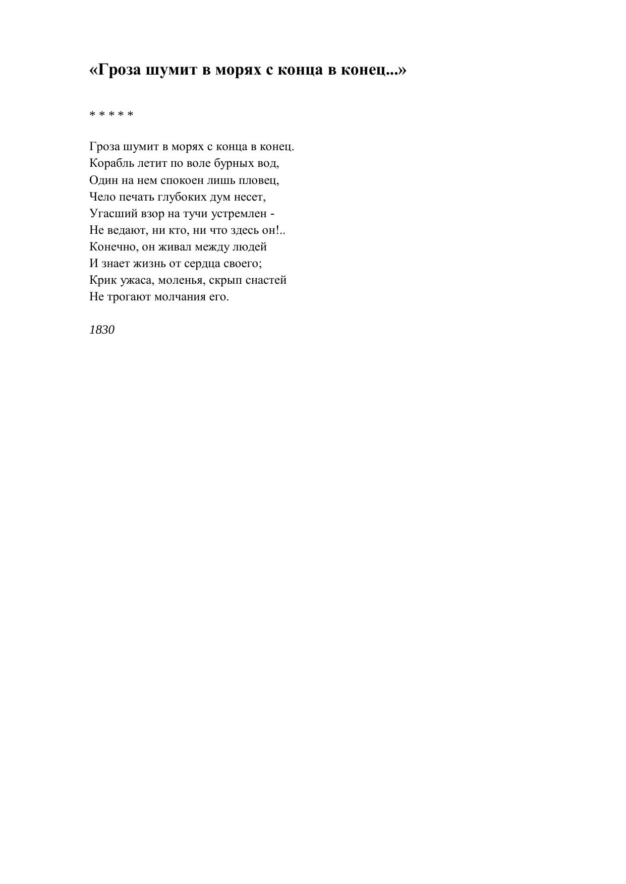 Гроза шумит в морях с конца в конец...