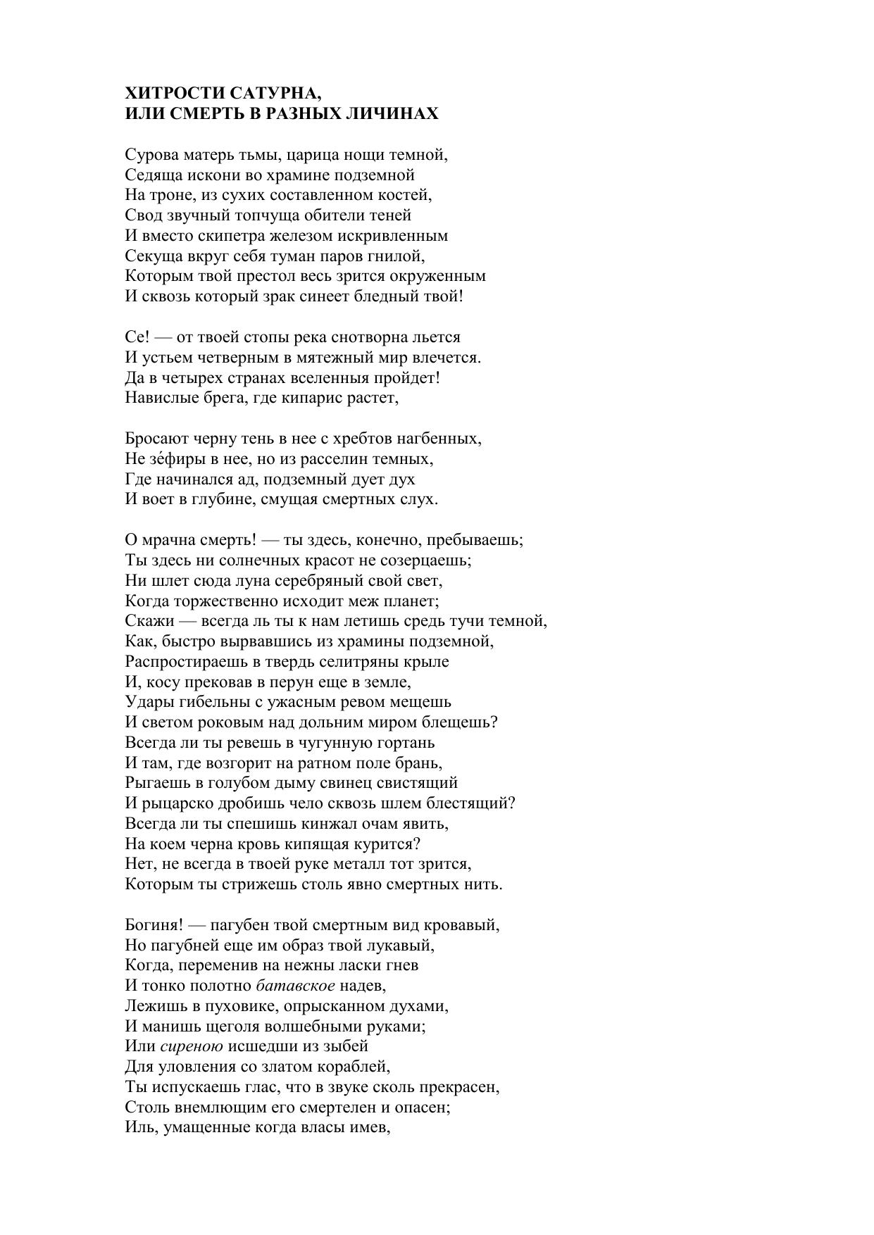 Хитрости Сатурна, или смерть в разных личинах