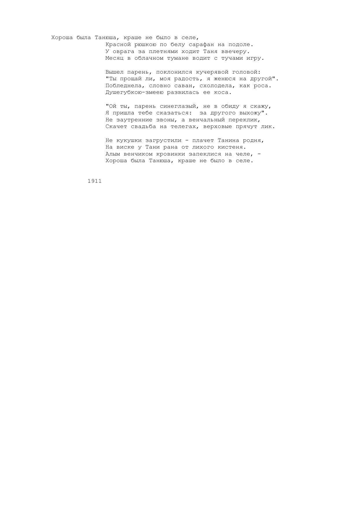 Хороша была Танюша, краше не было в селе...