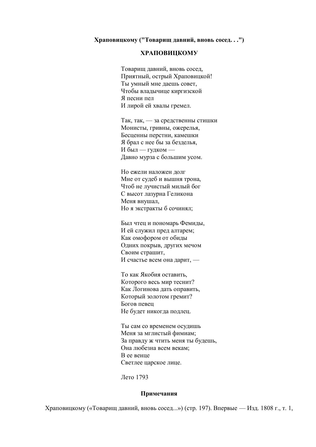 Храповицкому ("Товарищ давний, вновь сосед. . .")