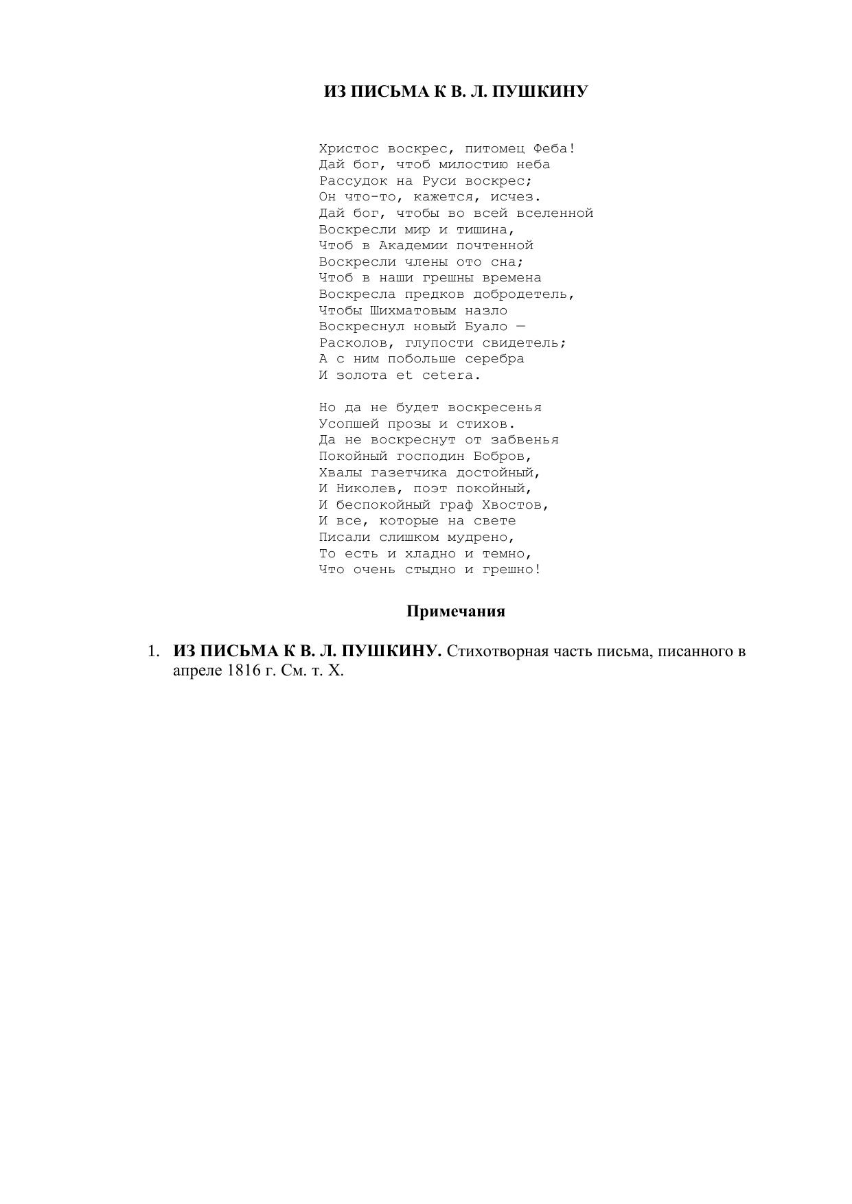 Христос воскрес, питомец Феба!..")